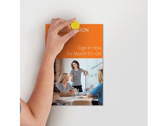Whiteboard magnets for displaying memos or messages neatly and securely on a magnetic board or used as fridge magnets. Pack of 10 coloured magnets, 38mm diameter.
