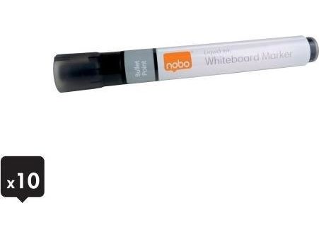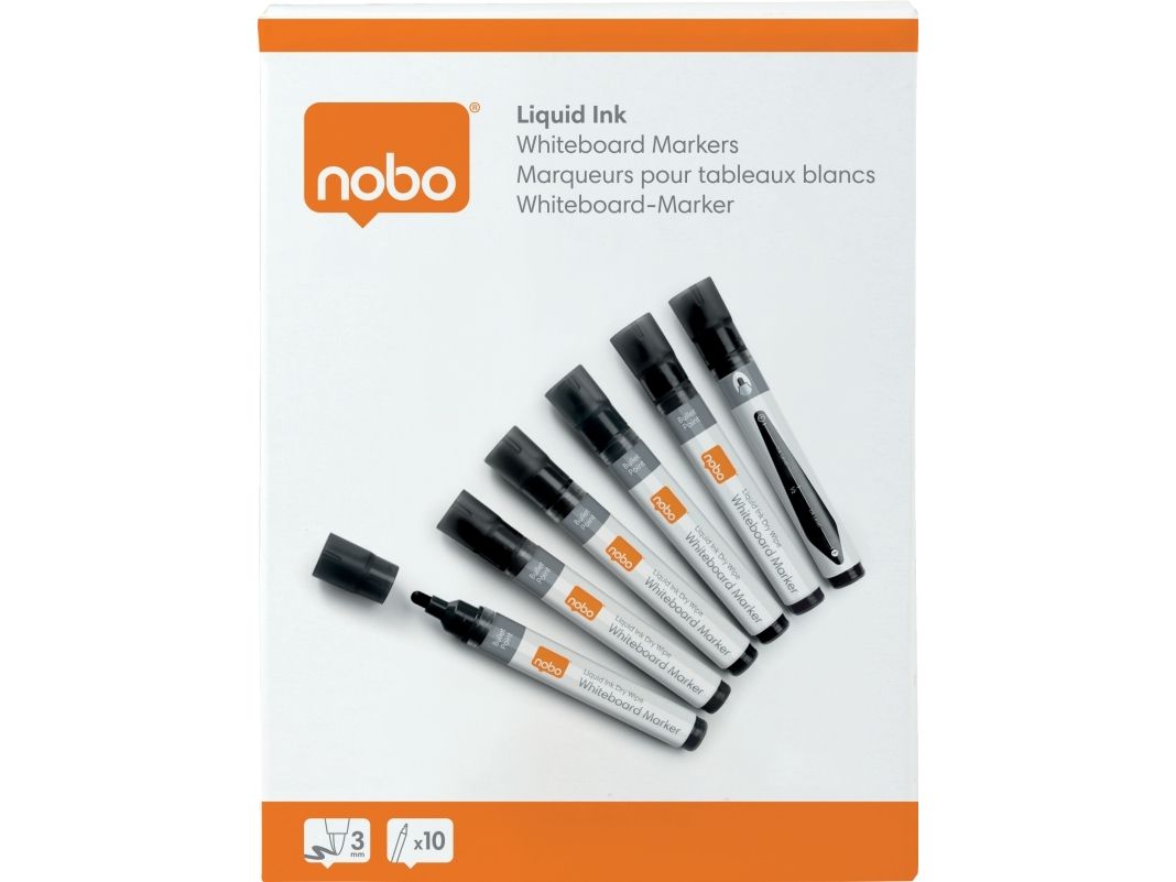 Nobo flytende blekk whiteboardpenner, rund tupp, pakke med 10 stk., 10 stykker, Sort, Projektil spiss, Sort, Grå, Hvit, Rør, 3 mm
