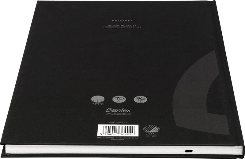 Notesbog A4 Bantex HEL Helsinki kvadreret 7×7 mm sort