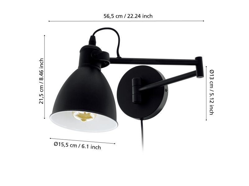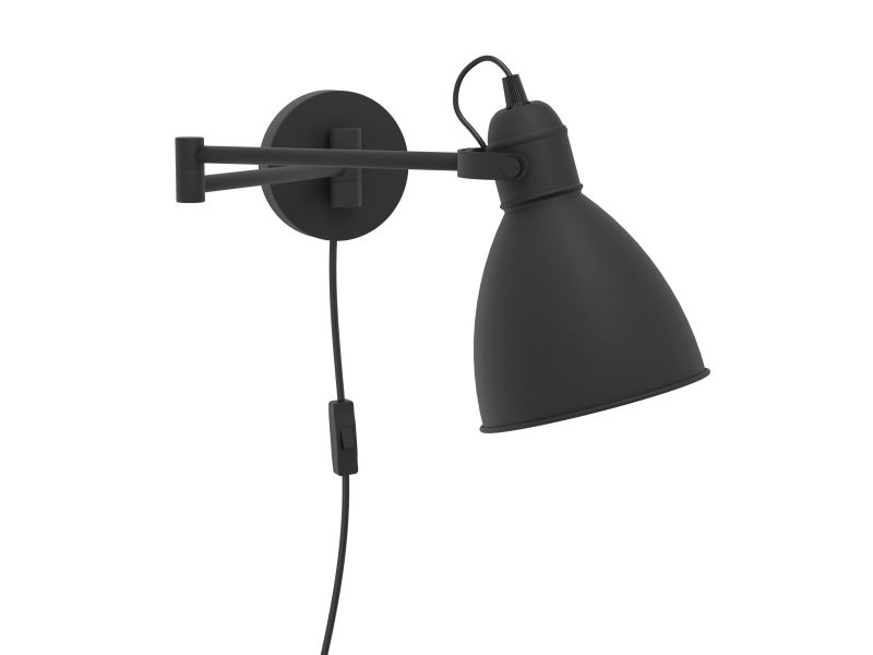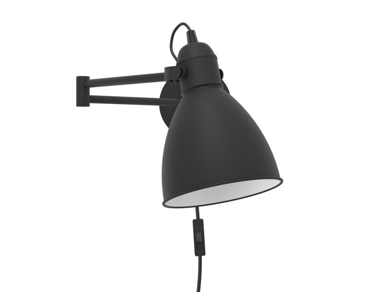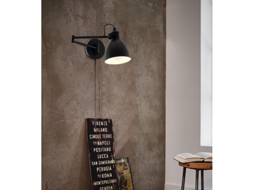 EGLO SAN PERI væglampe i sort. Med justerbar arm. Højde 21 cm, længde 13 cm, bredde 30 cm. E27, max. 10 watt. Leveres ekskl. lyskilde. IP20.