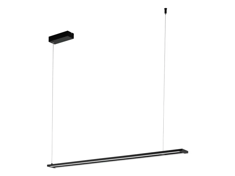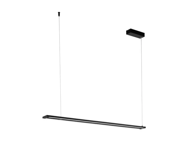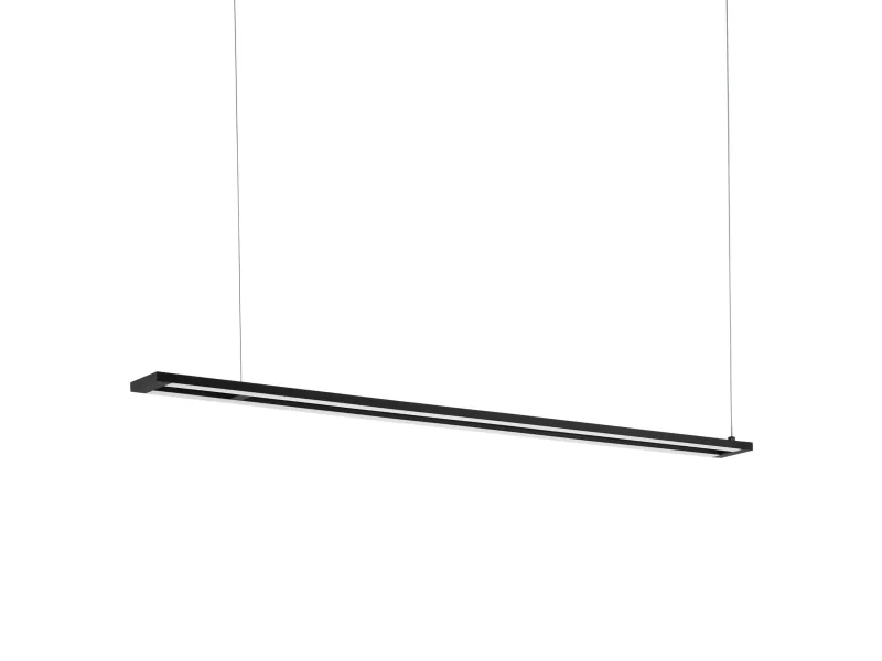This pendant luminaire of the AMONTILLADO series consists of black powder-coated aluminium profiles and white wooden plastic covers. The luminaire, which is dimmable via a matching wall switch, emits warm white light with an integrated LED -illuminant.