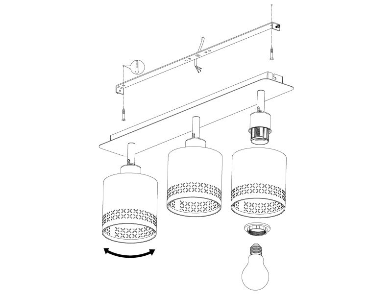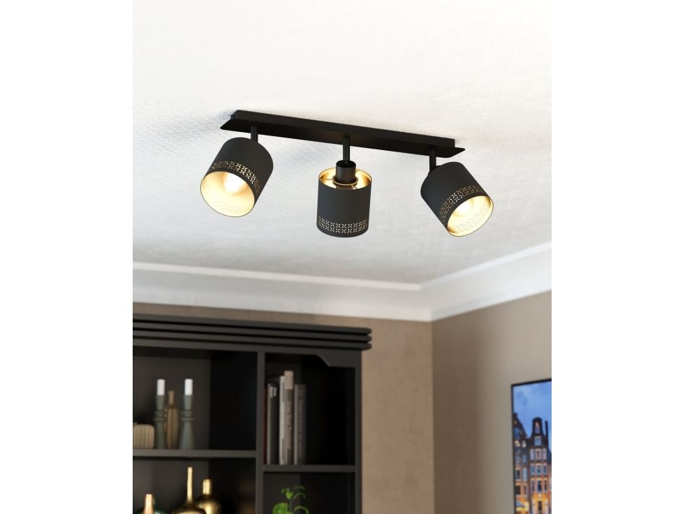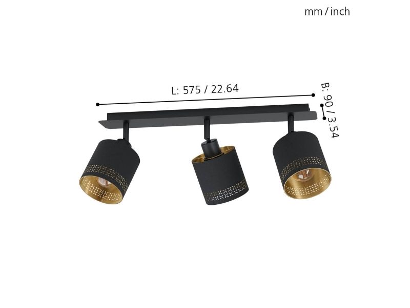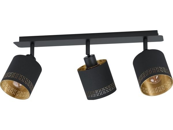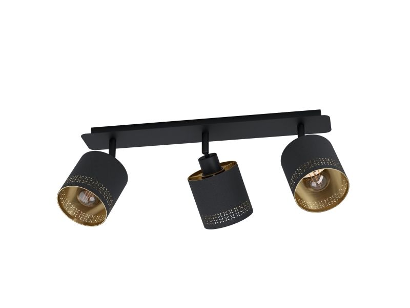 EGLO ESTEPERRA væglampe 3L i stort og guld med hulmønster neder rundt i tekstilskærmene. L: 57,5 cm, B: 9 cm. 3x E27, maks. 3x 28W. Leveres ekskl. Lyskilder.