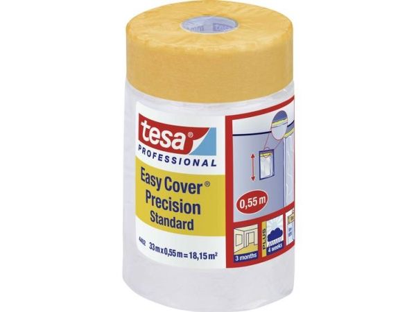 Easy Cover® 4402 er en kombination af en lystransmission, der smyger sig ind til HDPE-folie og tesa® 4344-præcisions-crepe®-standard. Den praktiske 2-i-1 løsning til at dække store og tidsbesparende områder og beskytter i én arbejdsgang. Den er modstandsdygtig over for alle farver og giver en nem afstandbarhed op til 3 måneder indendørs og kortvarigt 1 måned udendørs. Til sikker fastgørelse på glatte og let strukturerede overflader. Den prægede afdækningsfolie forhindrer, at farven løber ud og drypper ned på de flader, der skal beskyttes. Yderst velegnet til et sikkert afdækningsresultat med rene og skarpe farve- og lakkanter.