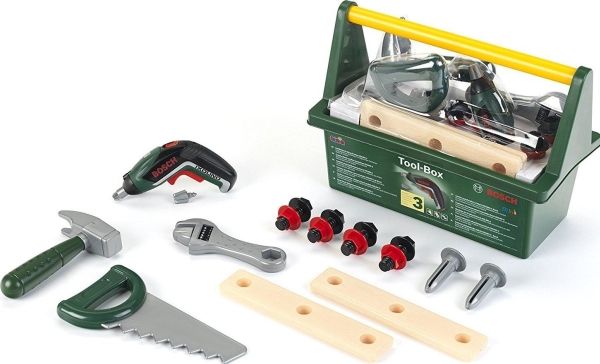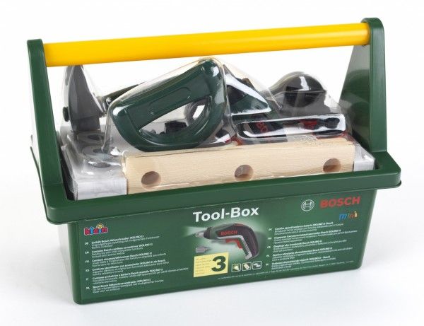 Klein verktøykasse med verktøy med Bosch skrutrekker, lys og lyder