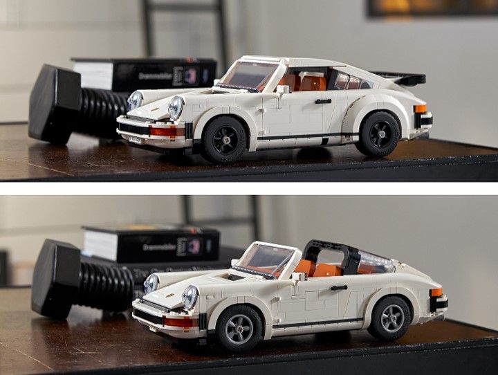 Celebrate the unmistakable style of Porsche with this fantastic building challenge as you create your own classic, collectible car with the LEGO Porsche 911 model kit. Choose to build either the Turbo model with its turbocharged engine or the Targa with its iconic Targa bar and a removable roof that stores under the hood.