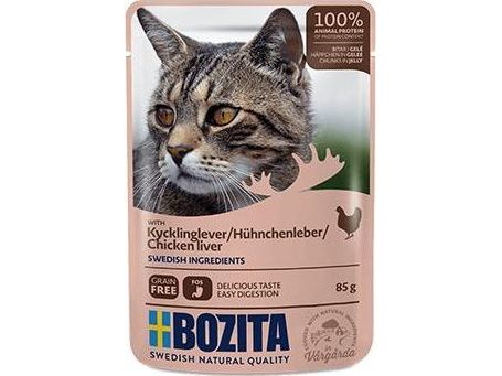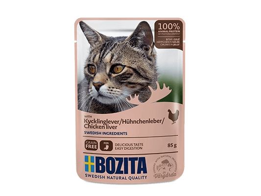 Bozita Kjøttbiter i gelé med kyllinglever - pose til katter - 85g