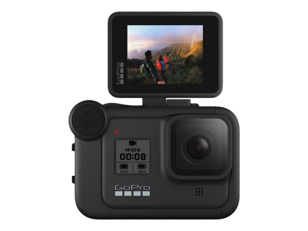 Frame the shot with Display Mod, the flip-up screen that lets you see yourself in action. Compact and perfect for vloggers, it connects to your HERO8 Black via Media Mod.
