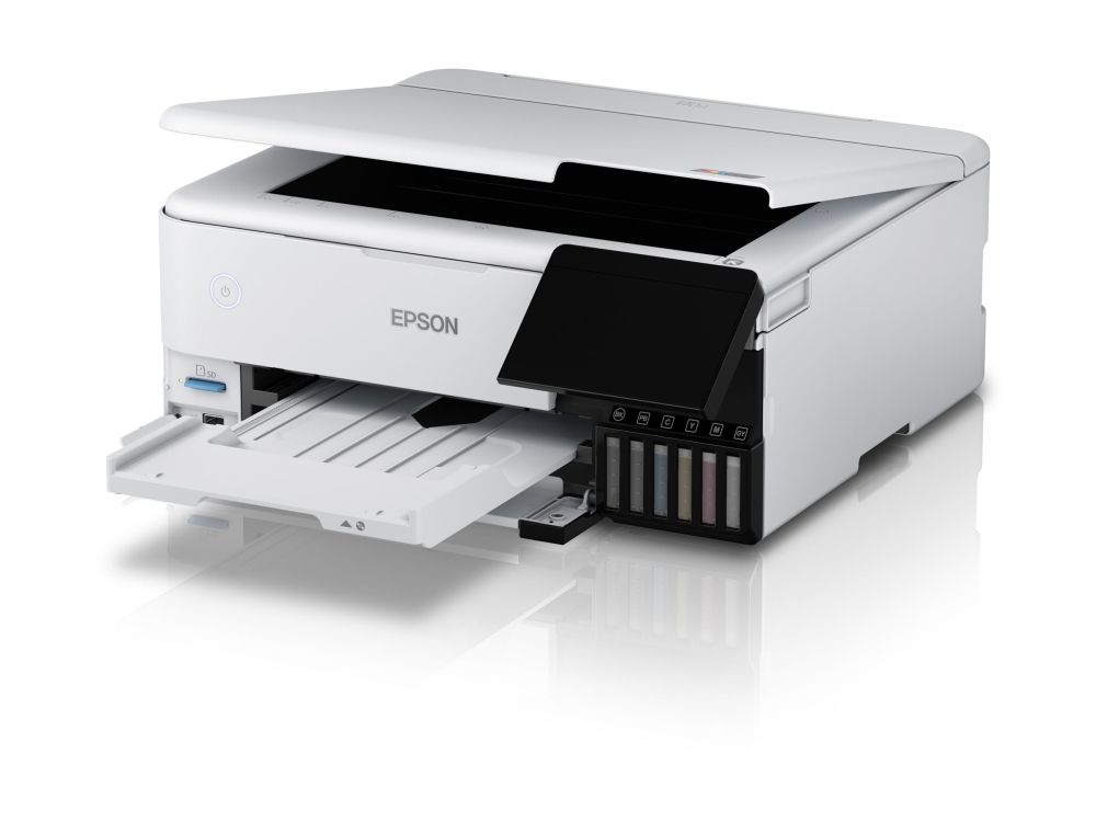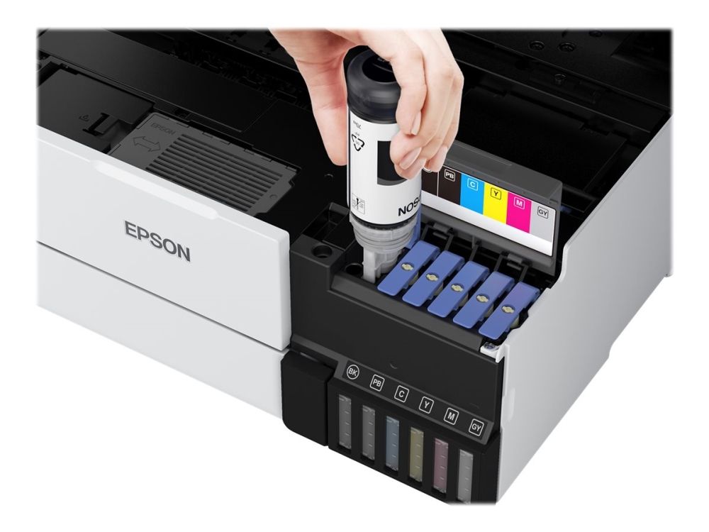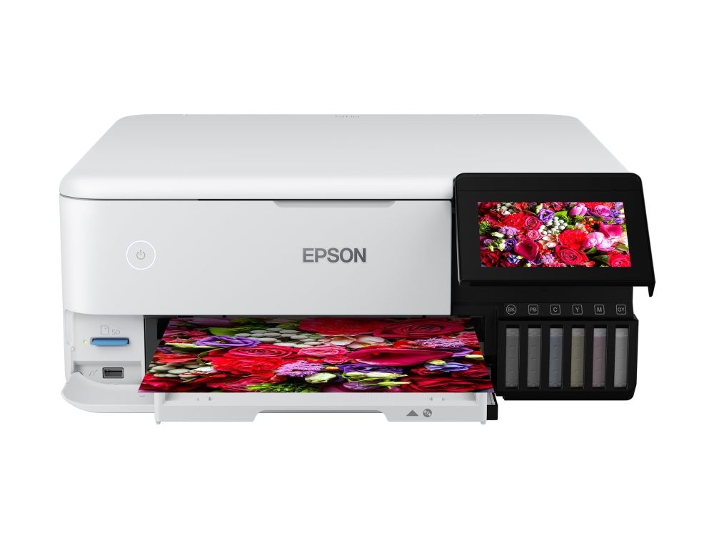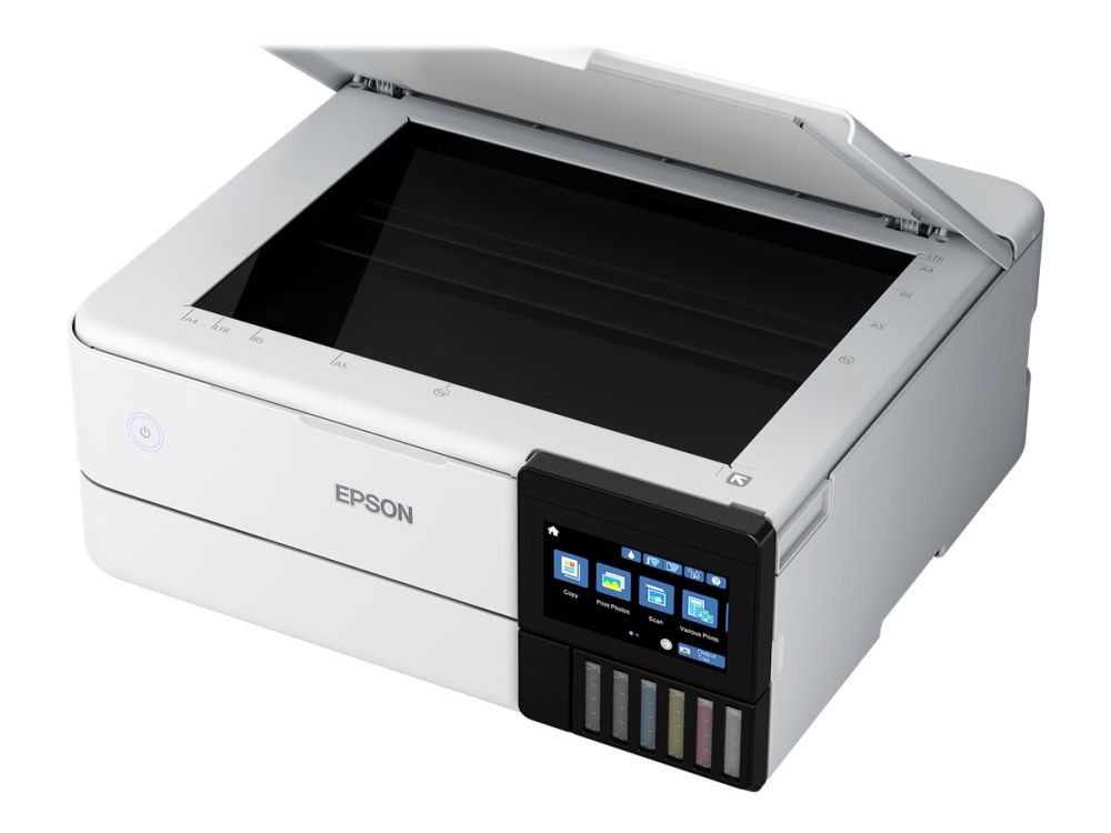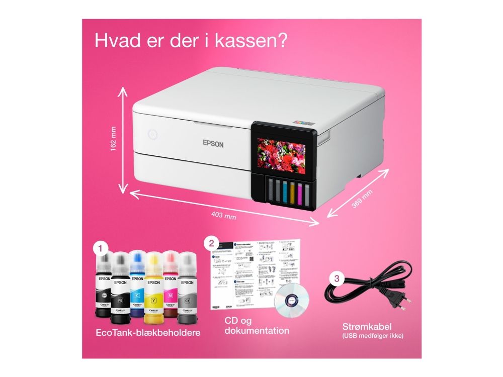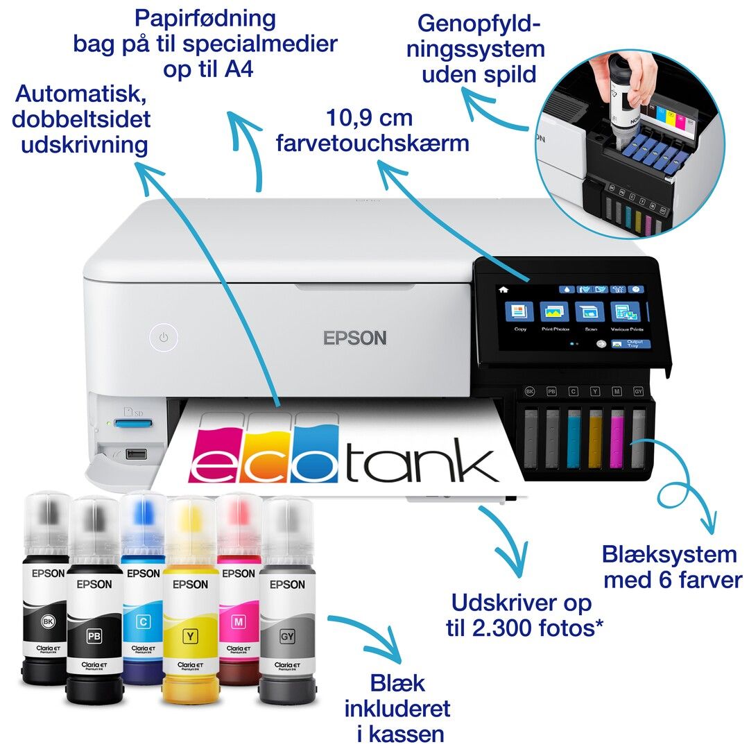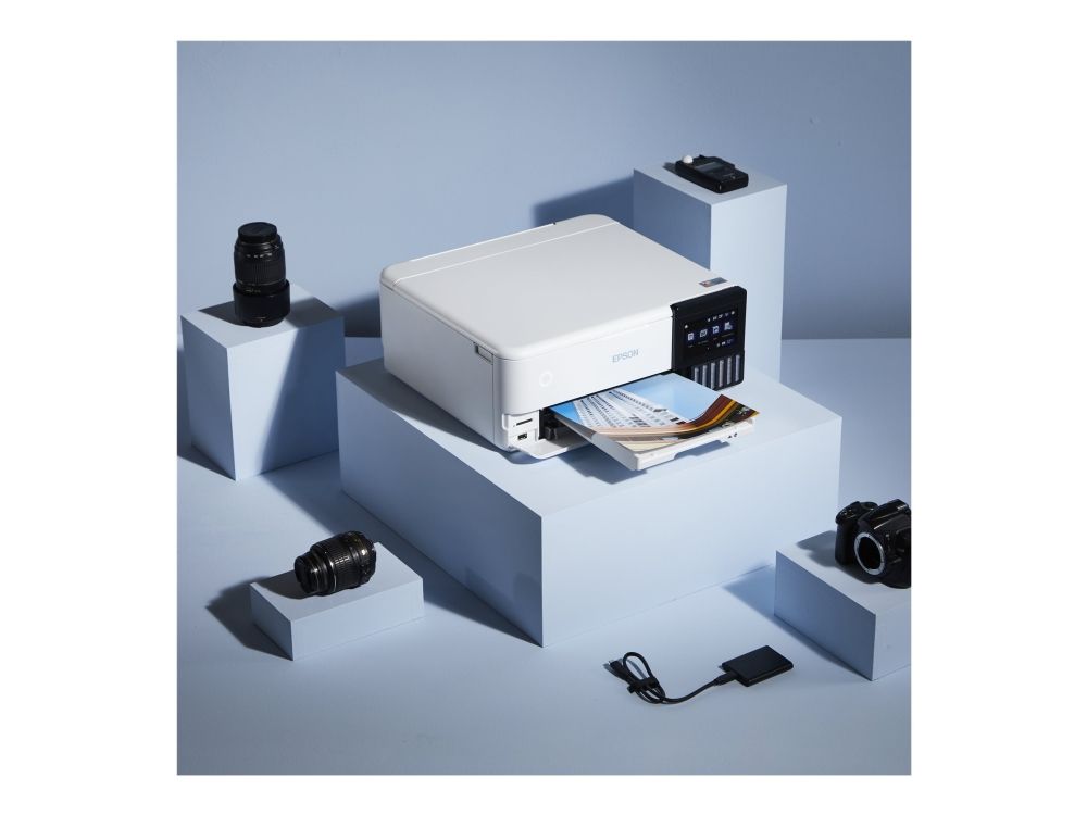 Epson EcoTank ET-8500 - Multifunksjonsskriver - farge - ink-jet - påfyllbar - A4/Letter (medie) - opp til 16 spm (trykking) - USB, LAN, Wi-Fi(ac), USB-vert - hvit