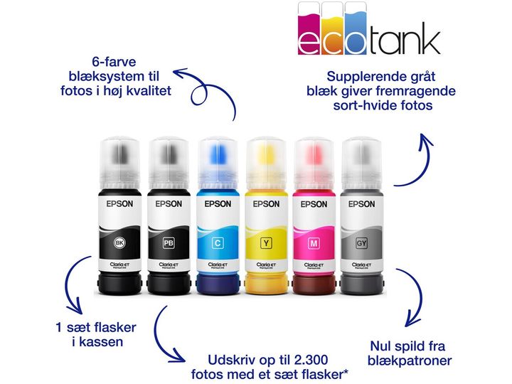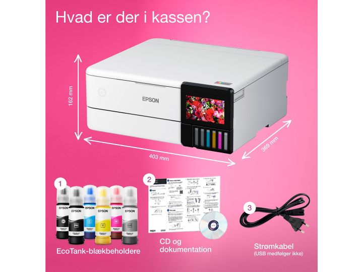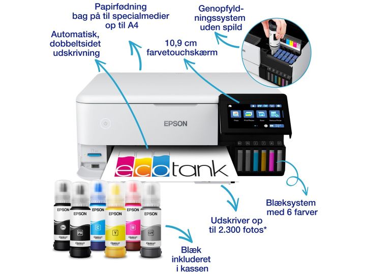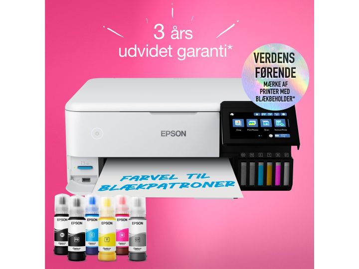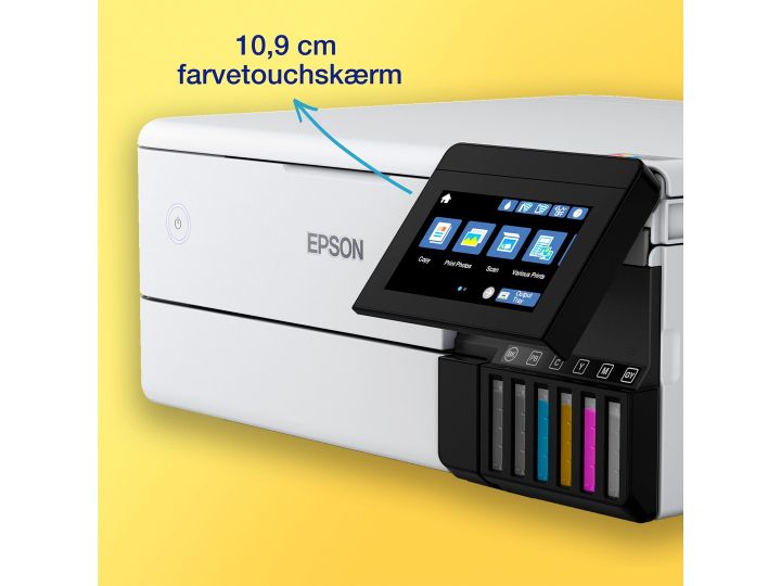 Slipp kreativiteten løs med imponerende A4-bilder og -dokumenter til utrolig lave kostnader per side. Skriv ut, kopier og skann enkelt ved hjelp av den imponerende 10,9 cm fargeberøringsskjermen, 5-veis mediehåndtering og et innovativt 6-fargers blekksystem. Denne skriveren er perfekt for den kunstneriske, moderne familien, uten rotete blekkpatroner som må erstattes og fleksible tilkoblingsfunksjoner.