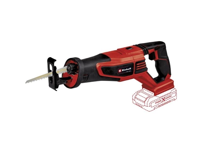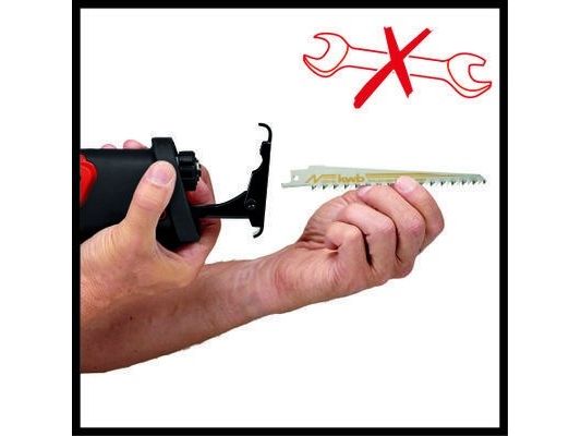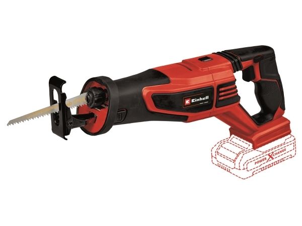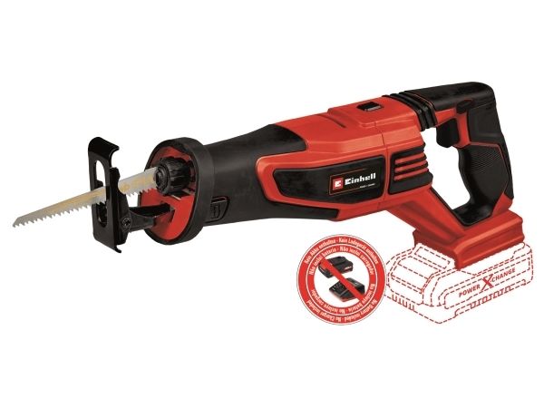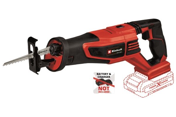 As a member of the Power X-Change series from Einhell, the Einhell TE-AP 18/28 Li BL - Solo cordless reciprocating saw offers flexible and limitless combination options. Each rechargeable battery in the system series can be combined with any PXC device. The brushless motor offers more power and runs longer than conventional carbon brush motors. The anti-vibration function ensures low vibration during operation, while the soft grip surfaces make the cordless reciprocating saw comfortable to use and ergonomic to handle. The rotating main handle ensures maximum flexibility. The adjustable soleplate enables optimal use of the blade, and rapid, tool-less blade changes keep things simple. A high-quality wood blade from KWB is included in the scope of delivery. This product comes without a battery or charger. For optimum use we recommend a rechargeable battery delivering 2.5 Ah or higher.