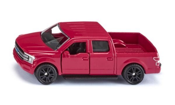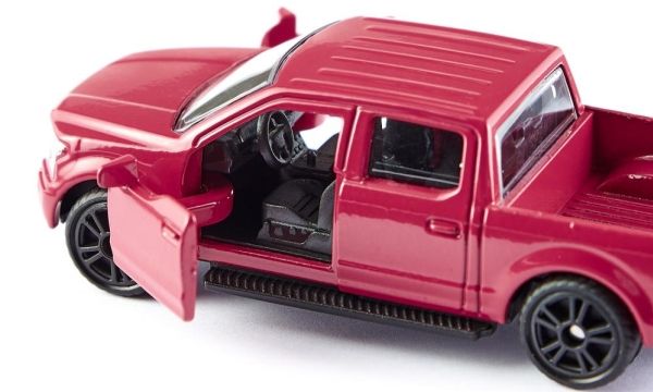 Pick-up for the American way of lifeFor more than 30 years, the Ford F-150 has been the best-selling pick-up in the USA. The pick-up, today in its 13th generation, has been built since 1948. The vehicle is comfortable, large, and robust, and because of its large load area, it is very popular especially in the rural parts of the USA. In these regions, it is usually sold with a trailer coupling, just like its siku counterpart. Open the doors, spring into the cab, and start the V8 engine. The American way of life is experienced through tyres made of rubberised material and designer wheels.