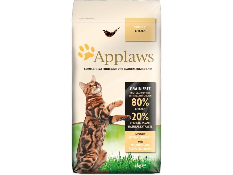 Many dry cat foods use grains as their primary source of protein. Diets that contain high levels of grain can be hard for cats to digest and convert into energy. This could stress the liver and kidneys and can lead to the development of sensitivities and allergies….. That’s why Applaws is grain and cereal free!
