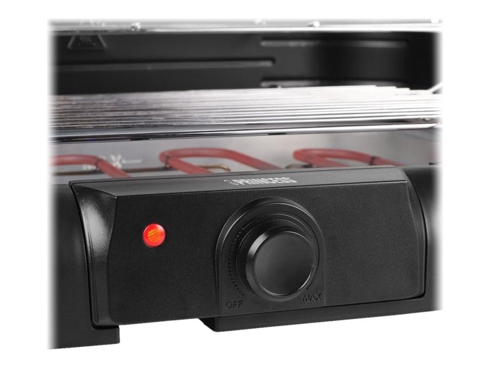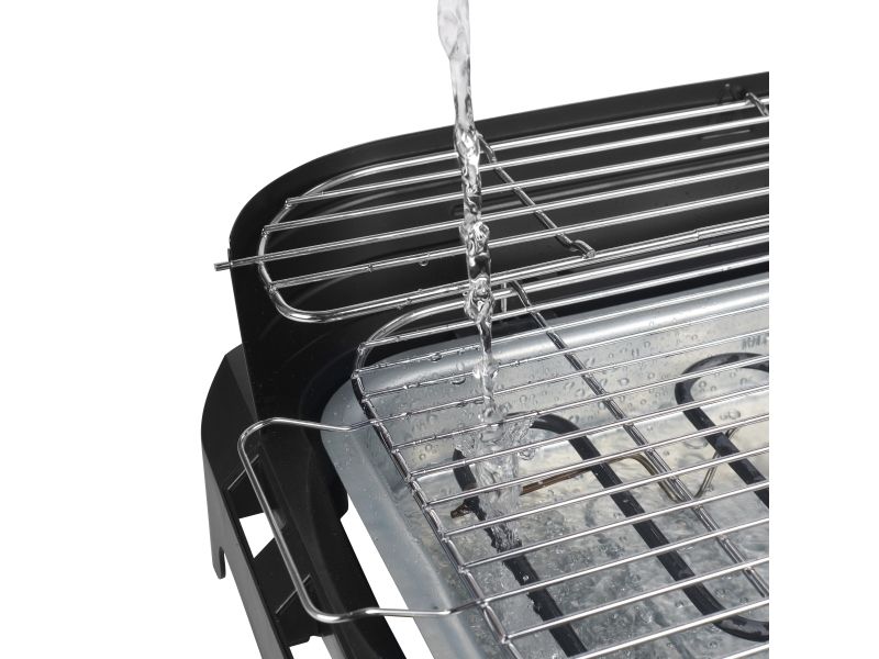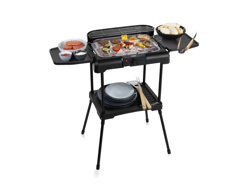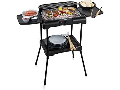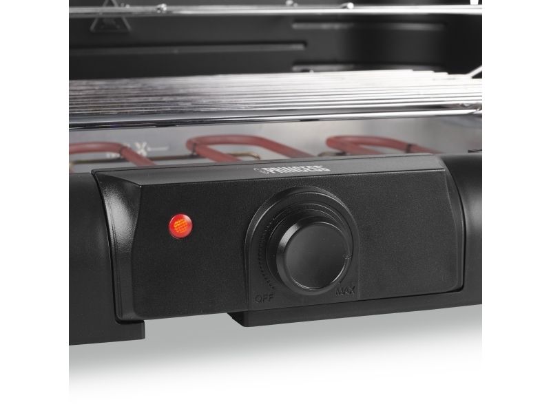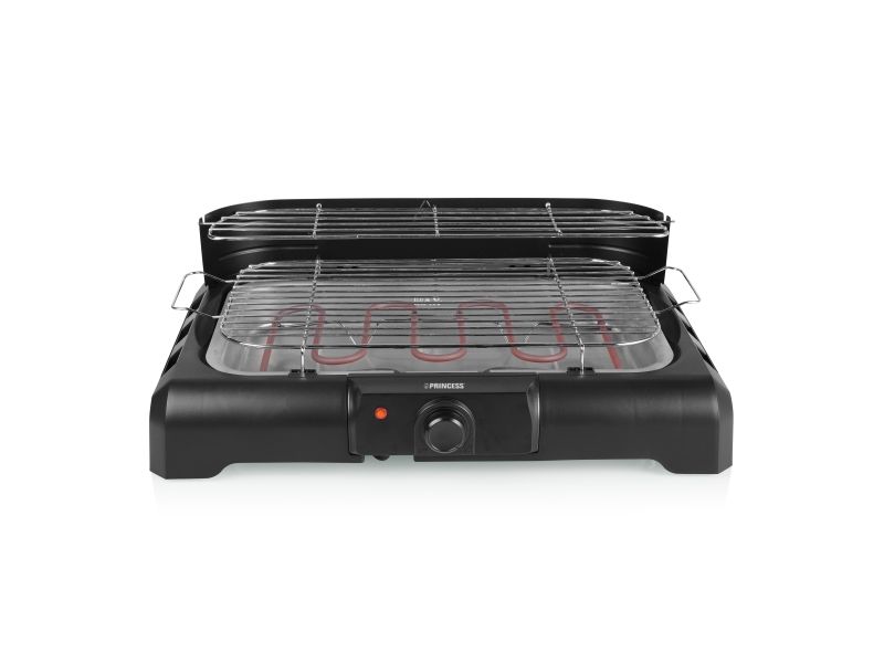 With the Princess 112250 Electric BBQ your summer will be complete. The stable and practical electric BBQ on a handy stand will enable you to have a nice BBQ anywhere you want. Due to the high power of 2200W it heats up very quickly and stays hot so you can keep grilling your meat, fish or veggies. The barbecue is provided with a windscreen, storage rack and handy side tables for all your BBQ equipment. Do you want to eat outside but not feel like standing beside the BBQ while your friends are sitting at the table? Use the electric barbecue as a table grill and enjoy a lovely dinner outside.