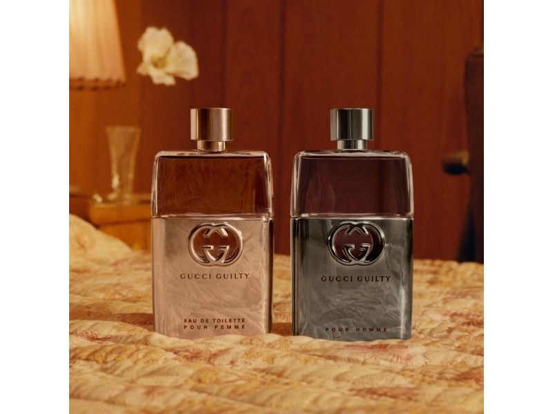Freedom and unconventional love inspire the new Gucci Guilty Eau de Toilette pour Femme bottle design and packaging, revealing the notion of women who are truly liberated. Reimagined in Alessandro Michele’s creative vision, the flacon is designed to echo the silhouette of the counterpart men’s fragrance, reflecting the equal standing of the women and men they represent.
