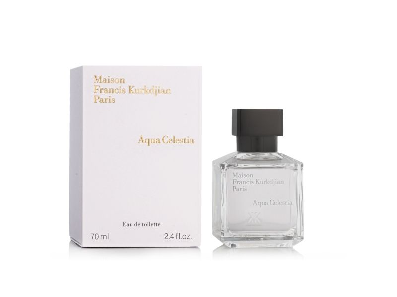 Inspired by the beauty of the ocean Aqua Celestia was introduced in 2017 by Maison Francis Kurkdjian Top notes of lime mint black currant and neroli create a delightful opening to the fragrance Rose and mimosa combine with green notes at the heart of the blend amplifying the refreshing nature of the perfume