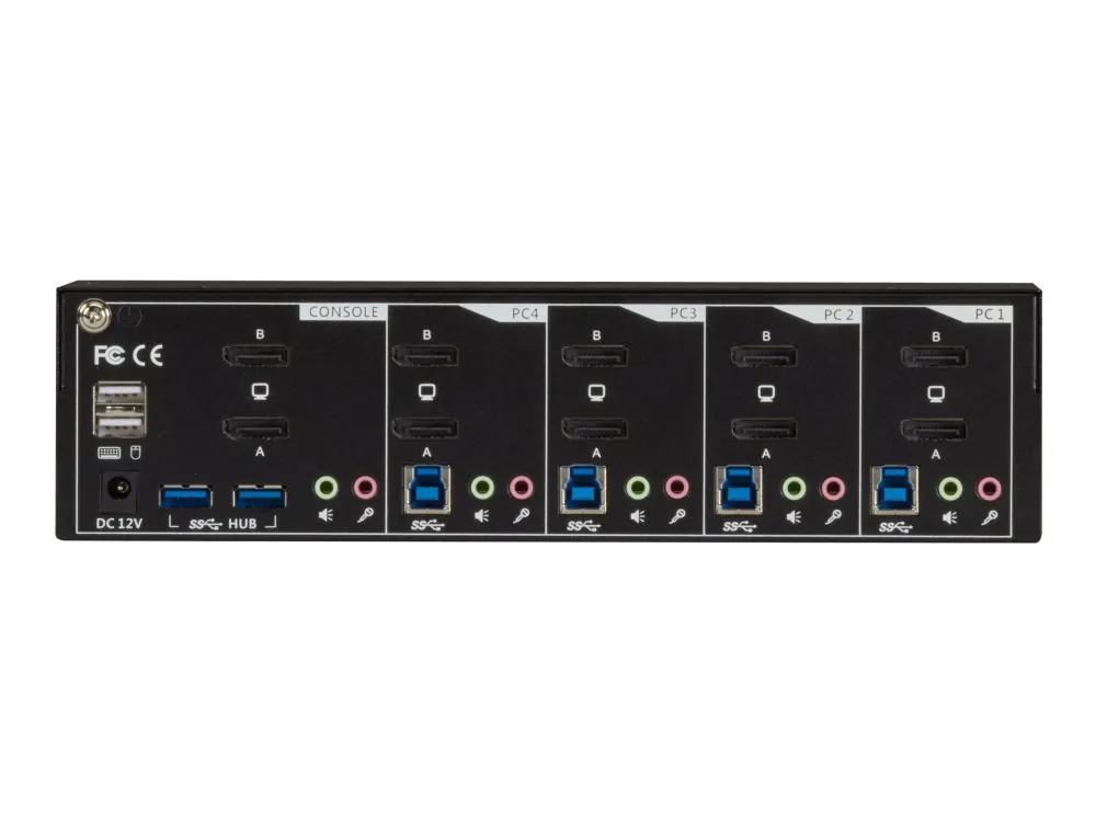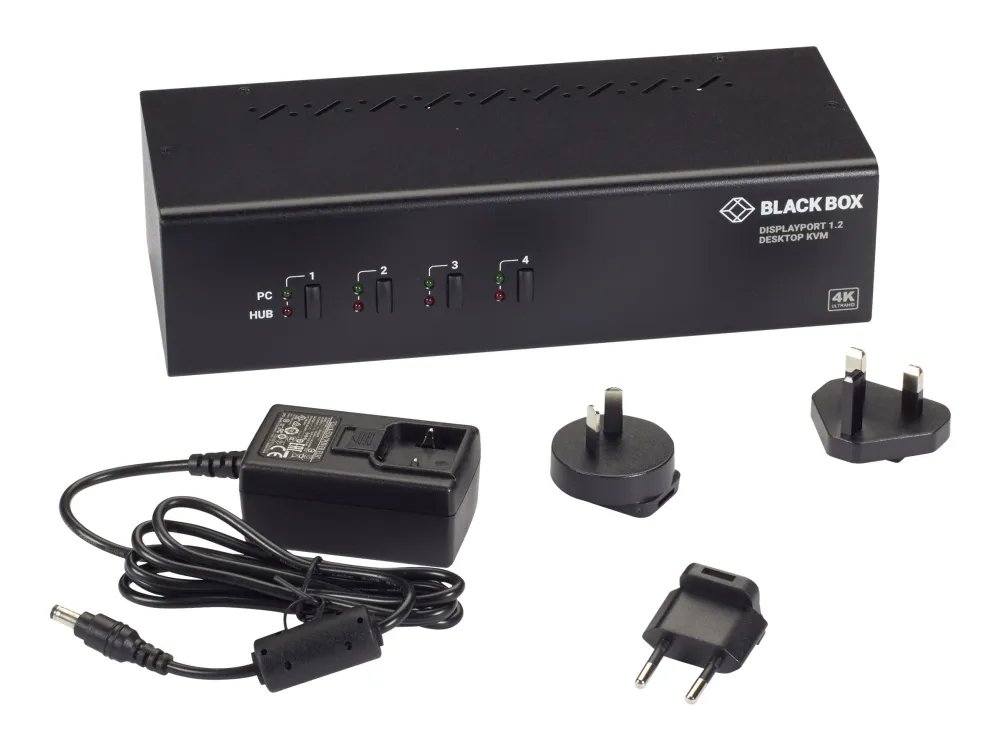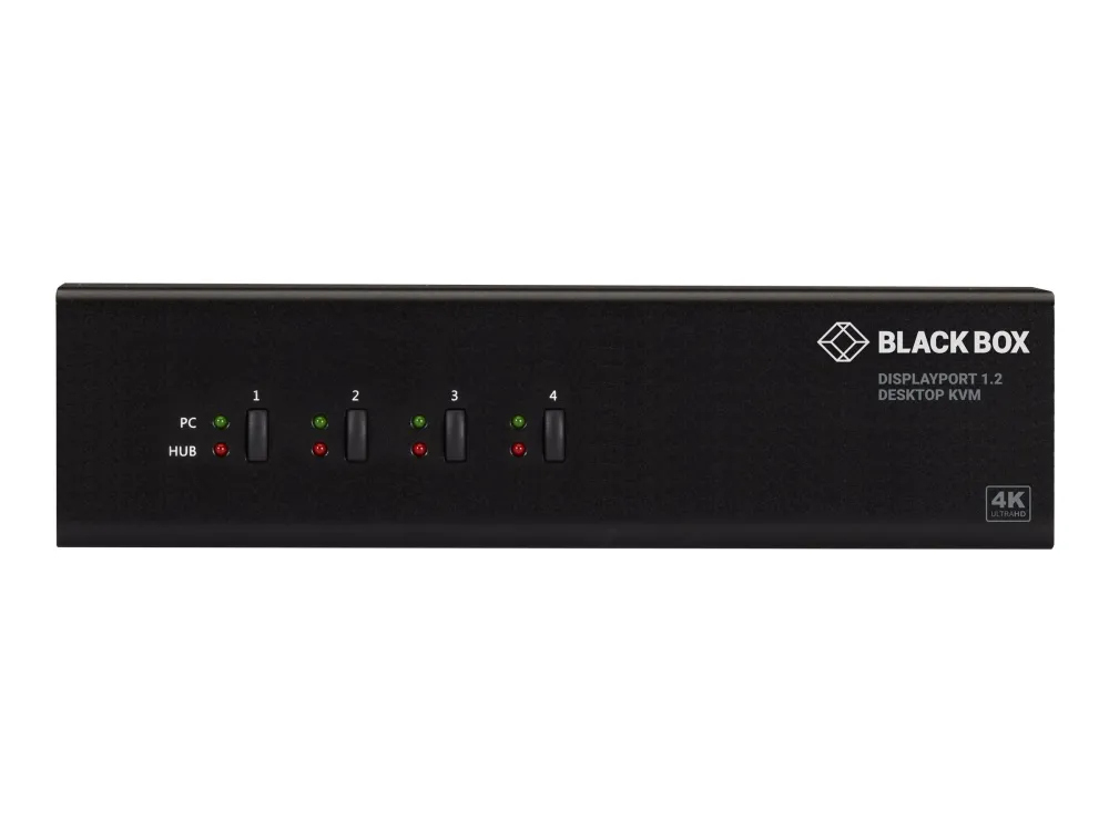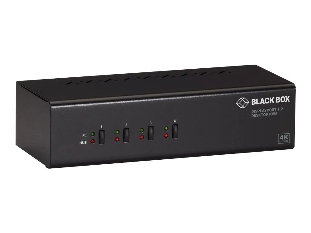 Black Box KVM-bryteren kombinerer funksjon og teknologi for effektiv styring av flere enheter. Denne elegante skrivebordsbryteren har en innebygd USB 3.0-hub, støtter opptil 4 KVM/lyd/USB-tilkoblinger og har plass til oppløsninger på opptil 3840 x 2160 med en oppdateringsfrekvens på 60 Hz, noe som gjør den egnet for HD-applikasjoner. Den er designet for å være enkel å bruke, og har knapper for valg av utganger og USB-tastatur- og musemulering, noe som sikrer en sømløs opplevelse for brukerne.