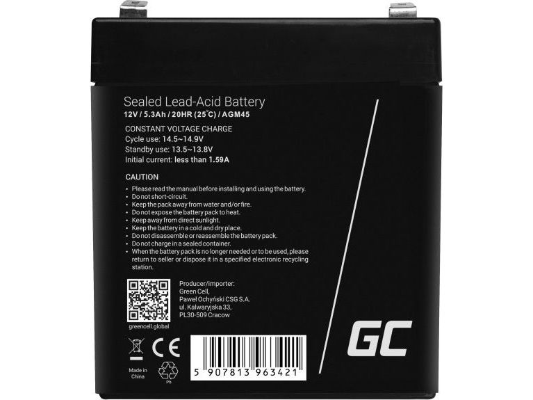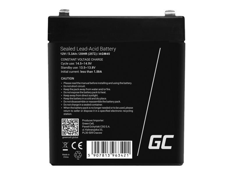 Green Cell - Alarm system battery - blysyre - 5.3 Ah - svart