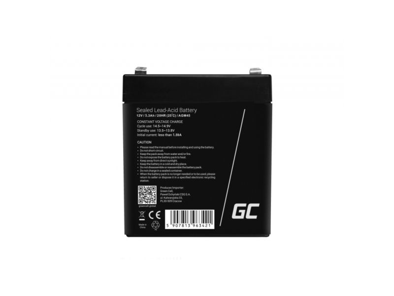 Green Cell AGM accumulator is made from highest quality materials. The device is perfect to be used heavily, but also to be used from time to time. The accumulator is based on AGM technology, which means that the electrolyte is absorbed by a fiberglass separator, preventing its leakage. This way the device can work in different positions, not just vertically. This is a perfect and much safer alternative for lead-acid accumulators.