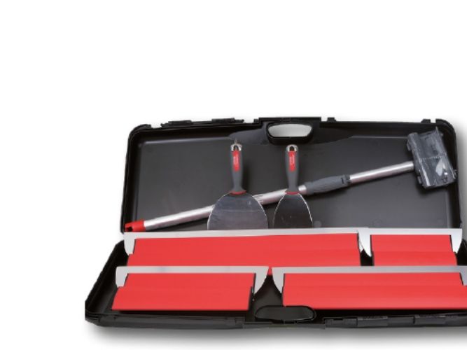 Sættet bestående af: 6 spartler i 25, 35, 45, 60 samt 1 teleskopstang på 2 x 0,5 meter & to håndspartler 10/15 cm Spartler med Bi-Flex teknologi som er ultra modstandsdygtig overfor slid. Professionel opbevaringskassemedfølger.