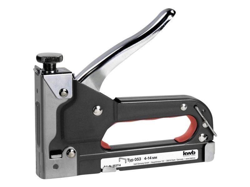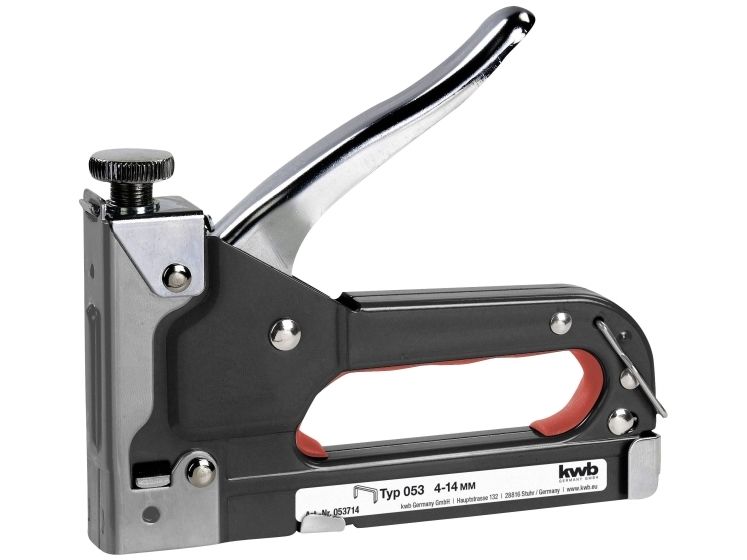Hæftemaskine, Tack 140, med trinløs regulering af slagkraft, stabil udførelse helt i stål, til klemmer 4-14 mm, type 053.