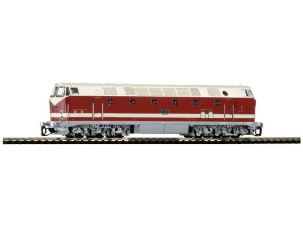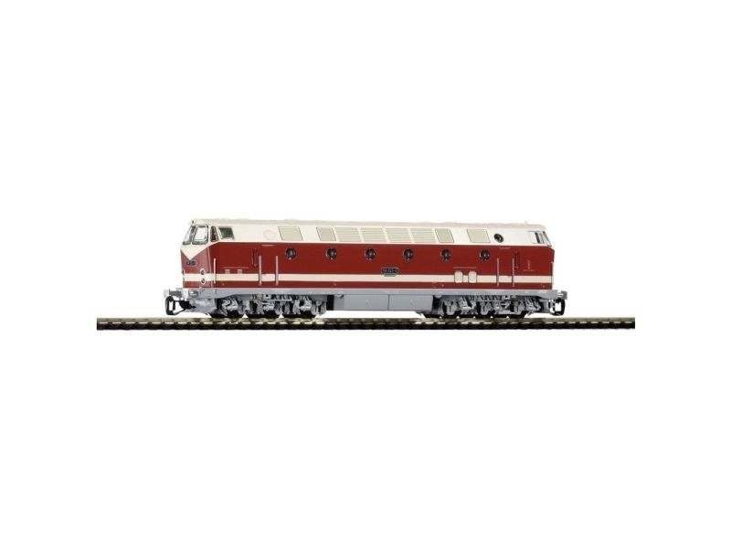 TT diesellokomotiv BR 119 fra DR Nyhed 2021: PIKO TT-modellen fra serie 119 er udviklet som sit forbillede fra den overskuelige, robuste og funktionsikre konstruktion af V 180 fra PIKO. Da dette skete med en konstruktiv konsekvens og en høj teknisk kvalitet, er det overbevisende med en afbalanceret løbetidskultur og en betydelig trækkraft. Lokomotivet drives af en motor med to nøjagtigt afbalancerede svingmasser. Drivmekanisme Sker på fire aksler. Formen og farven på lokomotivet, som på grund af dets bullfart kaldes ubåden, er ikke i overensstemmelse med dets finmekaniske præcision. Lokomotivet har kortkoblingskinematik, hvid/rød belysning, der skifter med kørselsretningen, og et PluX digitalinterface, en efterfølgende Sound-opgradering er forberedt. Påskrift som DR. EP.IV med højt Hohem-lys.