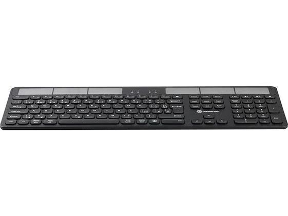 Powerton Powerton SolarSlim Keyboard, US Solar Powered Keyboard, Multi-Device Type 2.4 GHz Dongle + Dual Bluetooth, Wireless, Black
