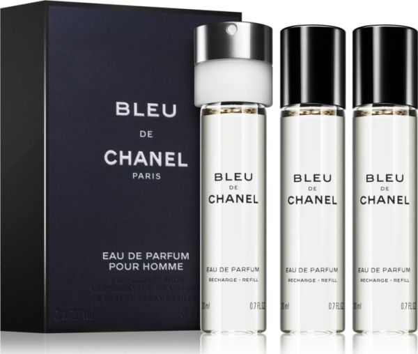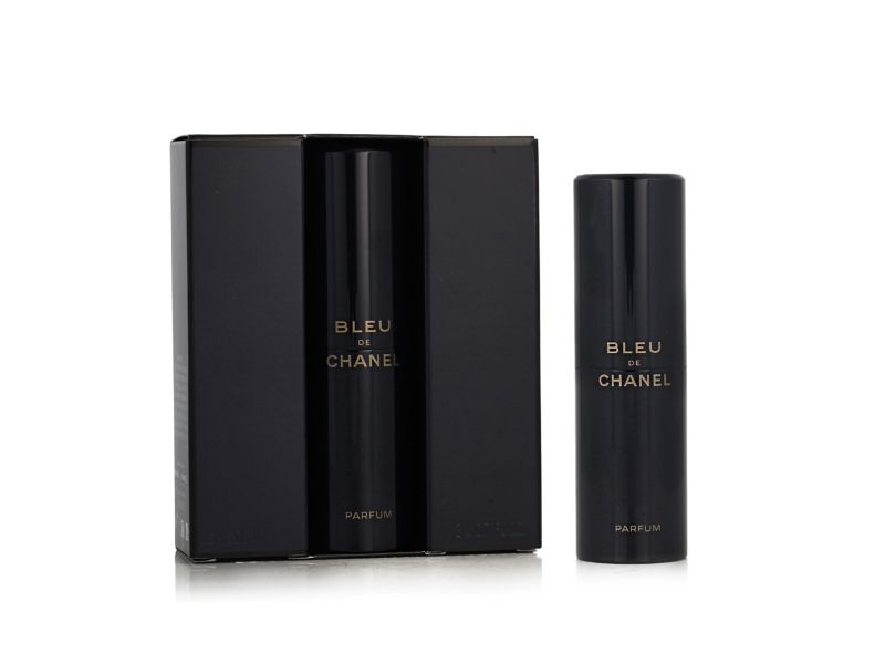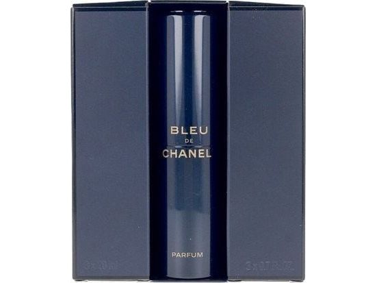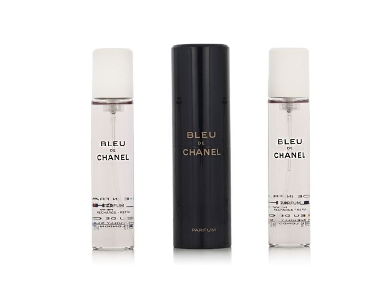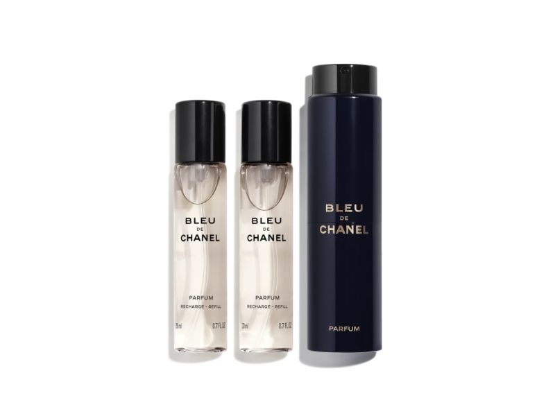 BLEU DE CHANEL Parfum reveals its full richness when sprayed directly onto the warmest areas of the skin (neck and wrists). BLEU DE CHANEL Parfum Twist and Spray slips easily into your bag for an intense trail at any time of day. Set of 3 refills also available.