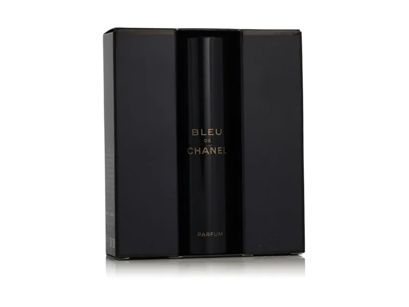 BLEU DE CHANEL Parfum reveals its full richness when sprayed directly onto the warmest areas of the skin (neck and wrists). BLEU DE CHANEL Parfum Twist and Spray slips easily into your bag for an intense trail at any time of day. Set of 3 refills also available.