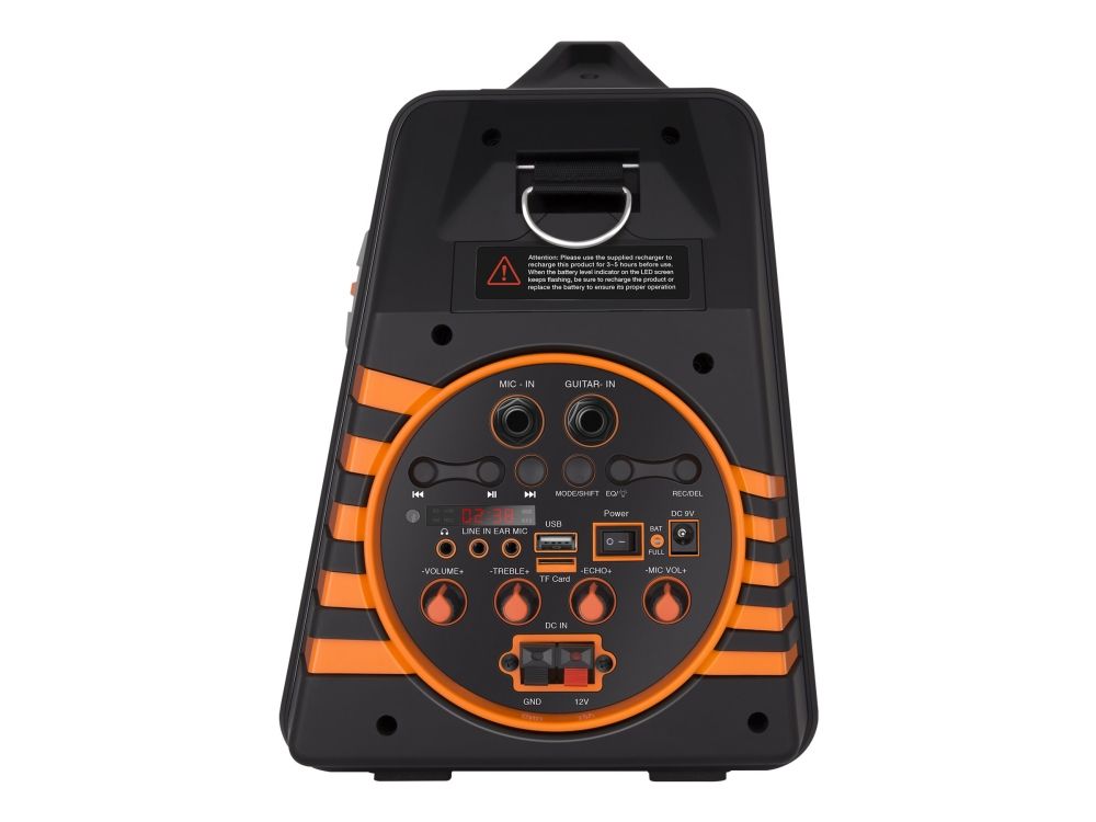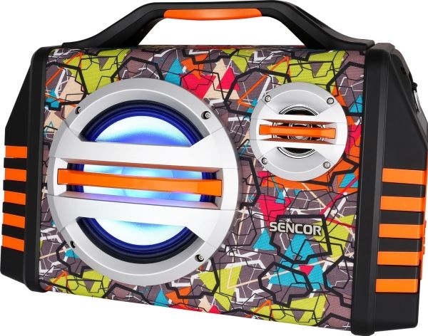Kids speaker SSS 3200 KIDS is tailored for all children who love music and singing. It is perfect solution for children's party, playground or just for playing. With a built-in rechargeable battery can play music for hours. One mid-range and one treble speaker take care of the quality sound. You can enjoy your favorite music via Bluetooth wireless access, USB stick, SD card, hard drive or another device with a 3.5 mm jack connector. Speaker is illuminated by multicolor LED light for bringing right party atmosphere.