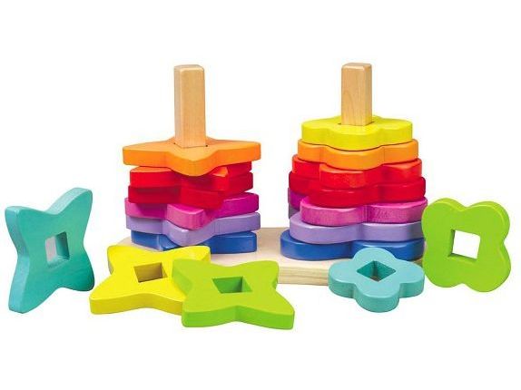 Lad dit barn stable de forskellige figurer. Figurerne har forskellige farver, former og størrelser, som altid får dit barn til at smile.