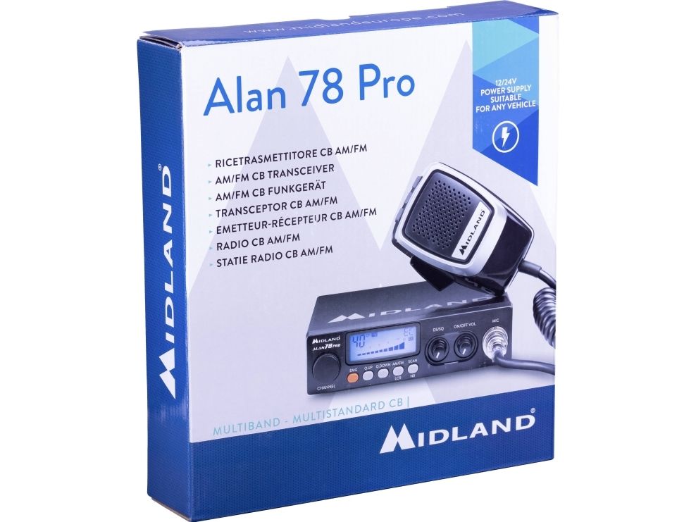 Det gennemprøvede CB radio med SMD-teknik 12/24V-strømforsyning. Apparatet imponerer med den mest moderne teknik (SMD), mikroprocessorstyring og en førsteklasses forarbejdning. Den kraftige NF-afspilning, AM/FM-automatik, der også arbejder i søgetilstand og den effektive støjundertrykkelse i mobil drift kendetegner MCB-mobilradioapparatet Alan 78 Pro.