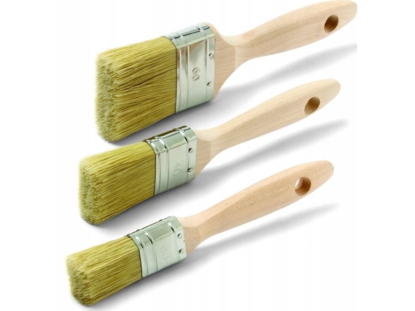 Fladpenselsæt med 1 stk. 30, 40 ug 60 mm. ubehandlet træskaft og forzinket blik