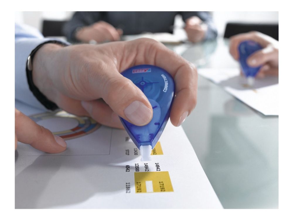 Miljvennlig korrekturroller som både høyre- og venstrehendte kan bruke uten problem. Til perfekte og permanente endringer. Lengde: 10 m og bredde: 4,2 mm.
