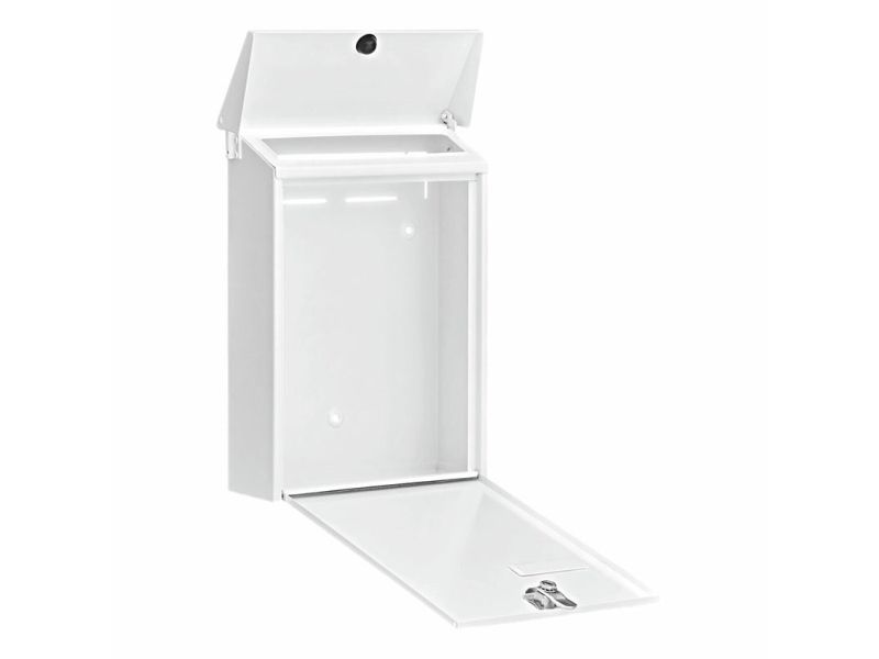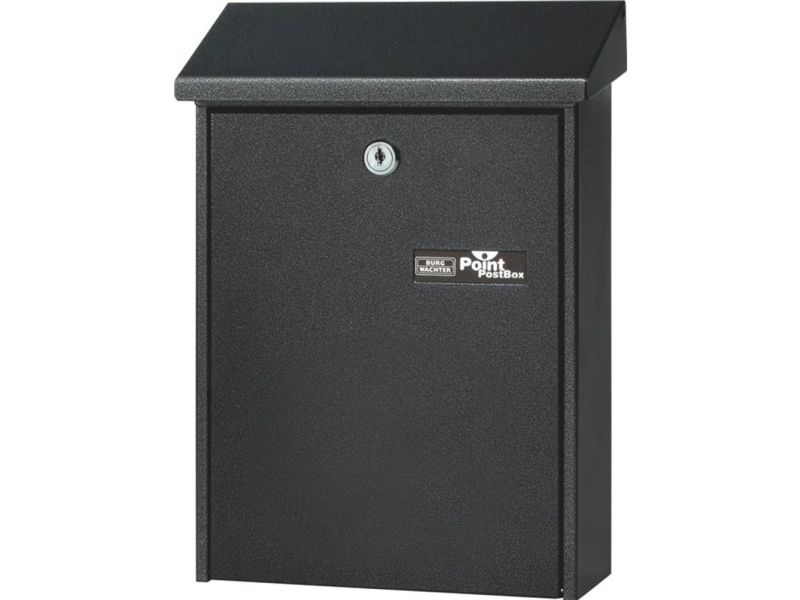 Burg-Wächter stålpladebrevkasser DAILY 5861 BURG-WÄCHTER postkassen Daily 5861 i stål er forzinket og strukturlakeret på hele fladen. Indkastningssæderne i formatet din B5 og dermed også posterne er optimalt beskyttet mod fugt med kassens vippetag. To nøgler medfølger.