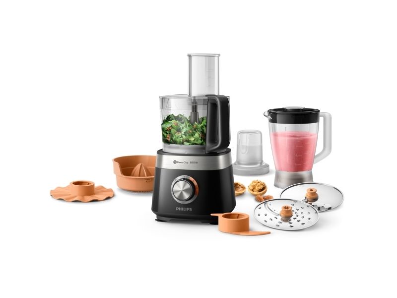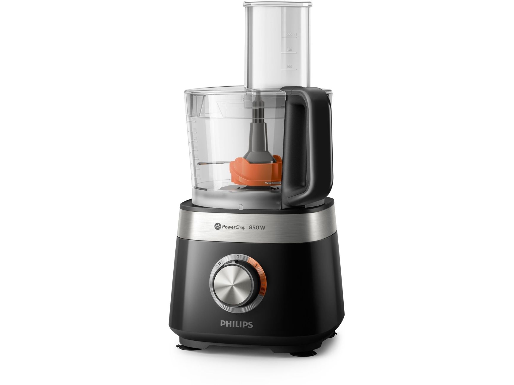Sunn hjemmelaget mat, ubegrensede muligheter. Gode resultater med selv de vanskeligste ingrediensene. Hvis du liker sunn hjemmelaget mat, vil du elske denne kompakte kjøkkenmaskinen fra Philips Viva. Designet spesielt for en hektisk hverdag. Du kan raskt tilberede gode retter, selv når de inneholder de vanskeligste ingrediensene.