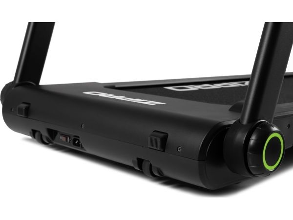 Hastighetsregulering er mulig gjennom knapper på skjermen og på sidehåndtakene, som også måler pulsen. En komplementerende funksjon er en hylle for smarttelefoner, som lar deg se favorittseriene dine mens du bruker tredemøllen, noe som kan "få tiden til å gå".