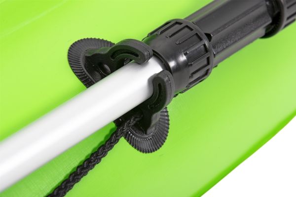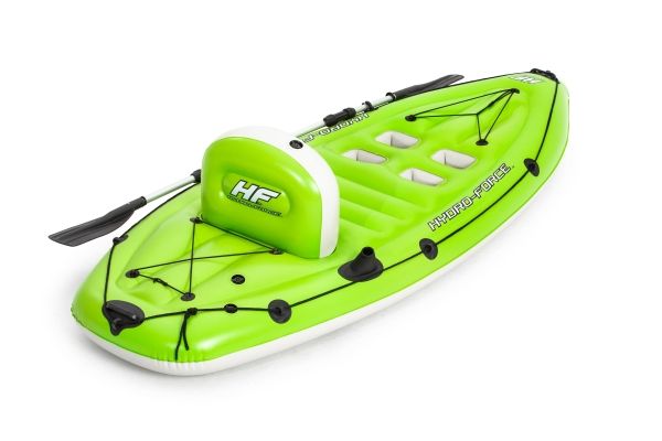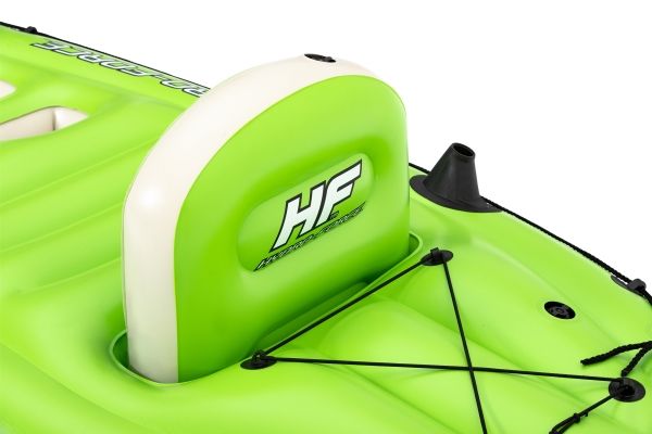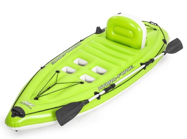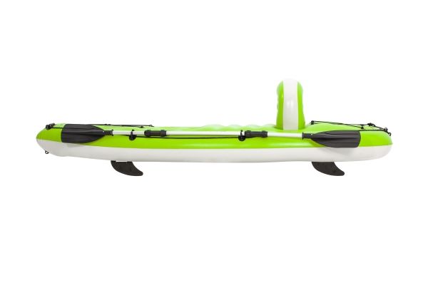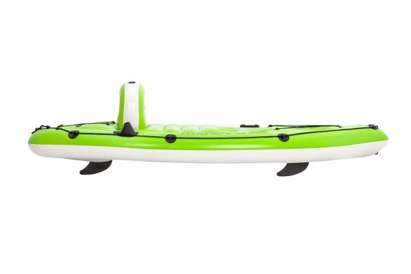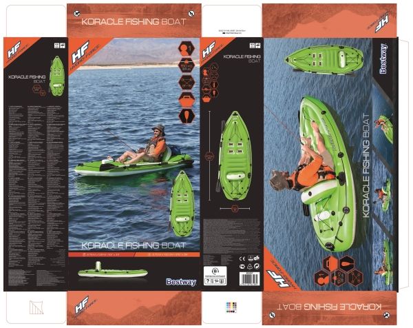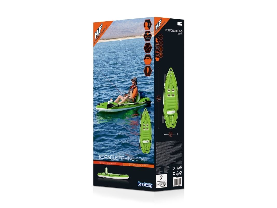 Der er ikke noget bedre end at slappe af på vandet og fiske dagen lang. Nu kan du fiske komfortabelt med den praktiske Hydro-Force? Koracle oppustelige fiskekajak. Sammen med en indbygget fiskestangsholder og årespænder har denne kajak også et oppusteligt ryglæn for ultimativ afslapning. Der er også 4 fodstøtter til brugere af alle højder, så alle, der bruger denne kajak, er lovet førsteklasses komfort. Koracle-kajakken er så praktisk, som den kan blive. Du skal blot puste den op, når du er klar til at bruge den, og tømme den for luft, når du er færdig. Den er perfekt til transport og kompakt opbevaring. Desuden kan rygfinnen tages af, hvilket gør det endnu nemmere at opbevare kajakken. Sættet indeholder også en Air Hammer?-håndpumpe til nem og hurtig oppumpning, en pagaj og en reparationslap. Maks. personer: 1 voksen Maksimal bæreevne: 150 kg Størrelse i oppumpet tilstand: 2,70 m x 1,00 m / 8?10" x 39" Størrelse i luftaftømt tilstand: 2,79 m x 1,08 m / 9' 2" x 43" Konstruktion med 3 luftkamre Lavet af holdbart PVC-materiale Indbygget ryglæn giver komfort Indbygget holder til fiskestang Gribeline hele vejen rundt Indbyggede åreholdere Aftagelig rygfinne for manøvredygtighed 4 fodhvilere giver plads til høje og mindre høje brugere 2 opbevaringsplads i elastiksnor (for og bag) 2 bærehåndtag (for og bag) Air Hammer? håndpumpe (nr. 62086) Padle på 2,18 m (86?) Selvlukkende hurtigtåbnende ventiler Indhold: 1 båd, 1 padle, 1 håndpumpe, 2 aftagelige finner, reparationslap