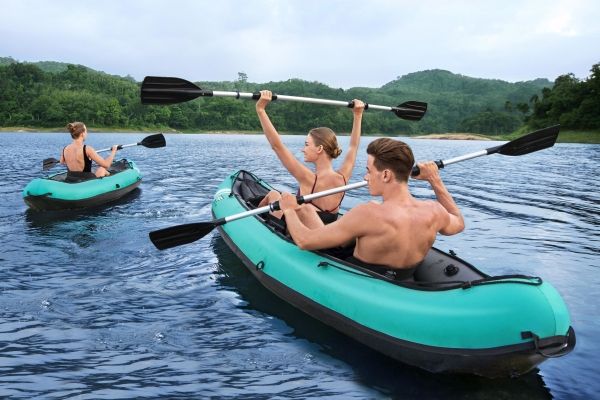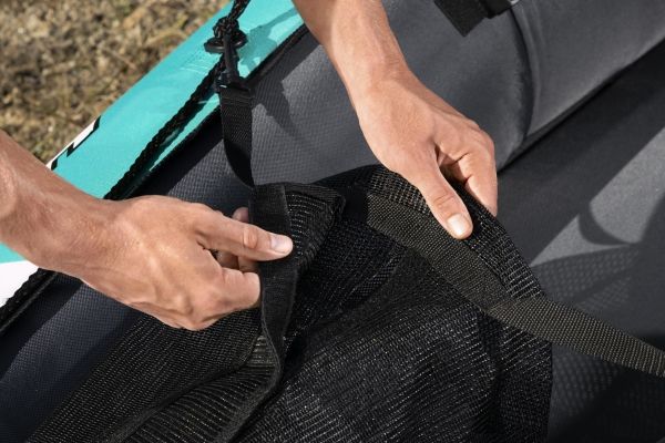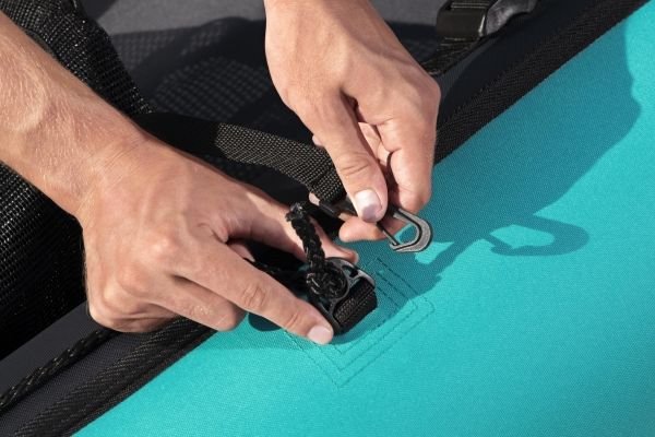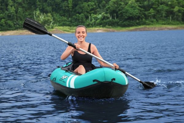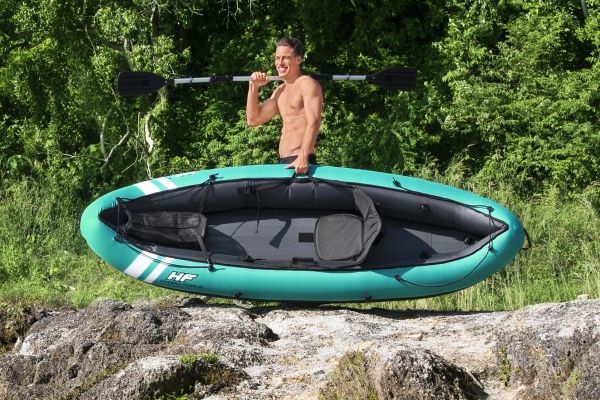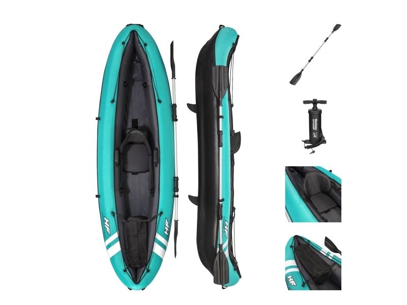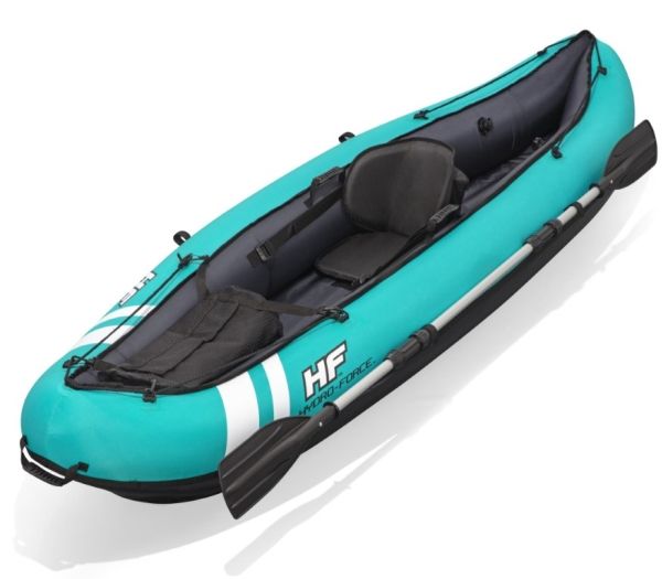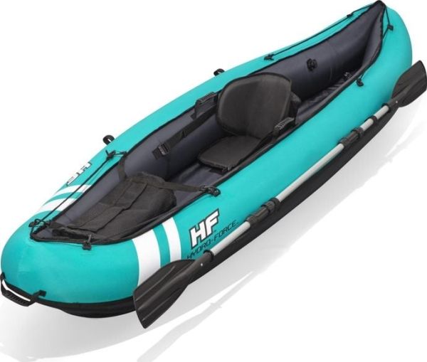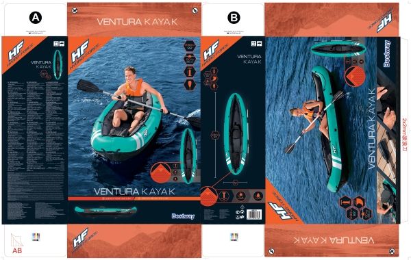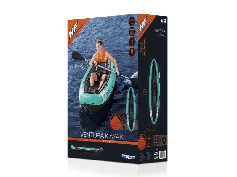Hydro-Force? Ventura-kajakken er ergonomisk designet til dit næste eventyr og er det perfekte fartøj til at forbedre dine udendørsoplevelser. Førsteklasses belagt nylon: Den førsteklasses nylonbelægning på Ventura-kajakken er bygget til de hårdeste eventyrere og kan modstå nogle af de mest barske elementer. Stoffet er oliesikkert, vandtæt og kan modstå intense UV-stråler. Den førsteklasses nylonbelægning er også punkteringsresistent og bygget til at modstå det barske og ofte stenede vand i en flod. Denne holdbare kajak vil manøvrere dig ned ad snoede floder, søer og gennem roligt åbent vand eller over bølgernes ebbe og flod. Vigtige funktioner: Denne enkeltsædekajak er designet med et justerbart ryglæn for komfort og støtte, og du kan pakke dine vigtigste ting som protein og vand i lettilgængelige opbevaringsrum. Ud over opbevaringen i fartøjets design er der også en aftagelig opbevaringspose, som giver dig adgang til dine fornødenheder, mens du padler gennem vandet. De dobbeltbladede årer er af aluminium, lette og holdes på plads af sikre årelåse. Når kajakken er fuldt oppustet med den håndholdte pumpe, er den 2,80 m lang og kan bære op til 100 kg. Den har robuste lærredshåndtag på hver side, som gør det let at flytte kajakken. Ventura-kajakken har aftagelige finner, der hjælper med retningsstabiliteten og øger hastigheden. Til opbevaring skal du blot afmontere finnerne fra kajakken for at få en ultrakompakt, pladsbesparende fold. Størrelse i oppumpet tilstand: 2,80 m x 86 cm / 9' 2" x 34" Størrelse i luftaftømt tilstand: 2,95 m x 1,13 m / 9' 8" x 44" Konstruktion med 3 luftkamre Førsteklasses skrog i coatet nylon, der tåler sol, olie og havvand 2 aftagelige sidekamre og I-bjælkebund i kraftigt PVC Aftagelige finner for retningsstabilitet 1 justerbart sæde med opbevaringsrum Aftagelig opbevaringspose Åreholdere En 2,18 m (86") aluminiumspadle Air Hammer? håndpumpe (nr. 62086) Skrueventiler til hurtig oppumpning/lufttømning Sikkerhedsventil Indbygget afløbsventil Bæreevne: 130 kg (286 Lb) Antal personer: 1 voksen Indhold: 1 kajak, 1 padle, 1 håndpumpe, 2 aftagelige finner, 1 sæde, 1 opbevaringspose, reparationslap