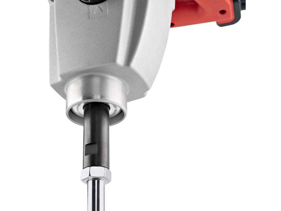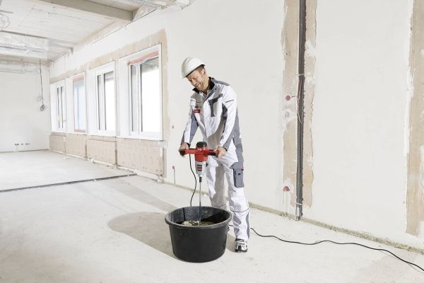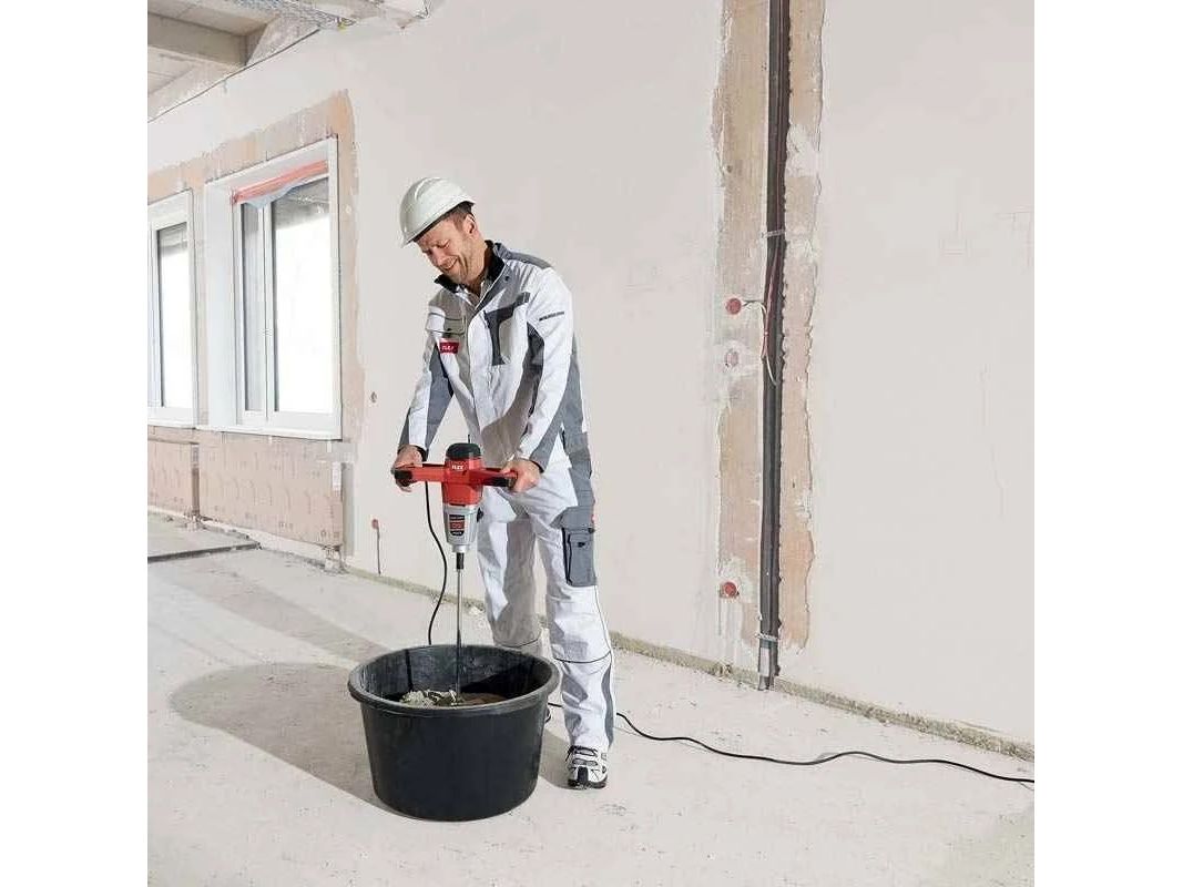 1600 watt 2-trins omrører med 3-trins omomdrejningstal Robust 2-trins gearkasse: Stort dimensioneret og optimalt oversat - til materialerigtigt omdrejningstal og et stærkt drejningsmoment fuldakselelektronik: Med blød start, temperaturovervågning, overbelastningsbeskyttelse og med trinløs hastighedsregulering med accelerationskontakt - for en kontrolleret opstart til den optimale rørehastighed. Høj trækkraft ved alle omdrejningstal. Komfortabel 3-trins kontakt kan nås uden afbrydelse af arbejdet fra gribeposition, beskyttet af gummitylle. Trin 1: Rengøring, trin 2: Røre, trin 3: Omrør drejekontakten til indstilling af den optimale blandingshastighed. Geartrin 1: Til højviskose byggematerialer, geartrin 2: Til mellem- og lavviskose byggematerialer ind-/ud-kontakt med fastlåsning og sikring mod genstart. ideal til stationær anvendelse i et blandingscenter. Den fleksible gummitylle beskytter mod snavs via tænd/sluk-kontakten. Ingen funktionsfejl ved hjælp af tilklæbede kontakter, ergonomisk greb på drevet: Lav vægt, en afslappet armholdning og opretstående position til en komfortabel og kraftskånende betjening. fire stødhjørner med gummibuffer sørger for en sikker opbevaring under transport og giver beskyttelse mod stød og slag på byggepladsen over motorhuset. det afleder luftstrømmen og forhindrer, at der trænger stænkvand til blandingsformål op til 90 kg ind med rørepind WR2 til omrører: pastøse op til hej. Fliseklæber, fugemasse, udligningsmasse, lim, færdig puds, klæbemørtel ...