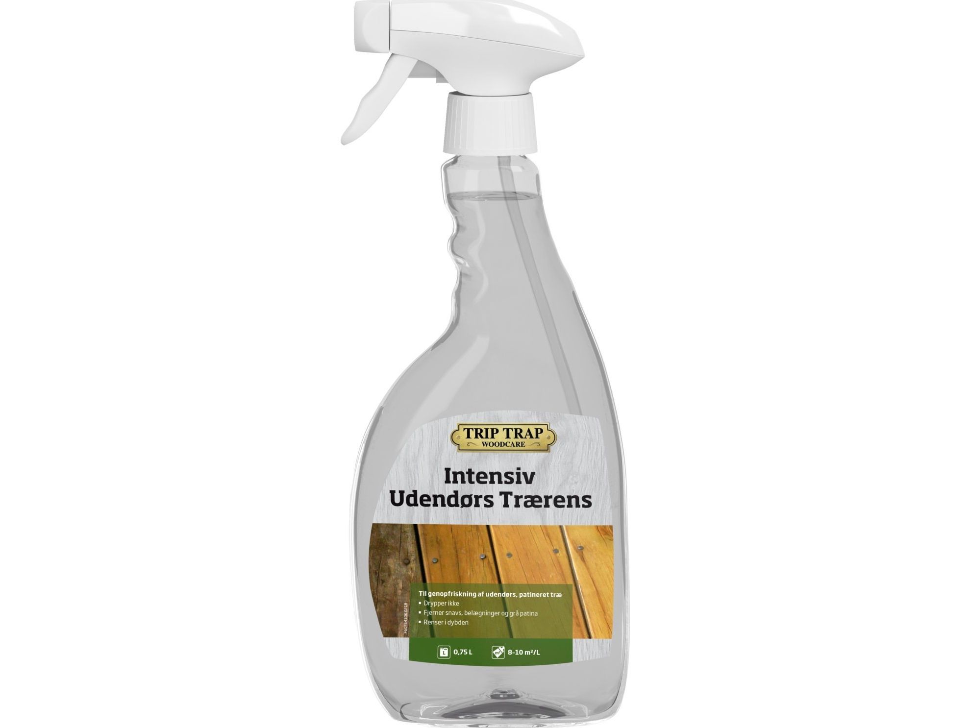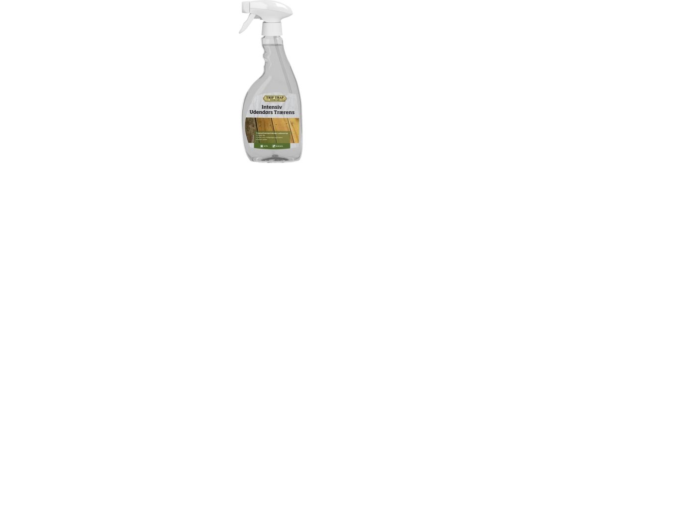 Intensiv Udendørs Trærens er en intensiv rens som genopfrisker patineret udendørstræ. Det er et færdigopblandet tyktflydende produkt, som er nem at påføre selv på vertikale overflader. Intensiv Udendørs Trærens trænger dybt ind i træet og fjerner snavs og grå patina. Efter behandling bør træet behandles med Trip Trap Træolie eller Terrasseolie Eksklusiv for at give træet den optimale beskyttelse.