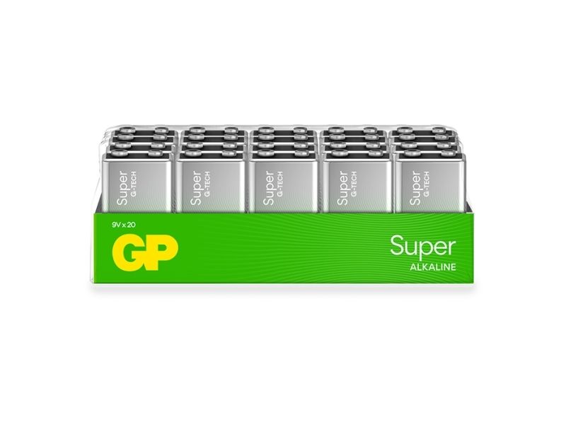 GP Batteries Super Alkaline 1604A/6LF22, Engangsbatteri, 9V, Alkalinsk, 9 V, 20 stykker, Flerfarget