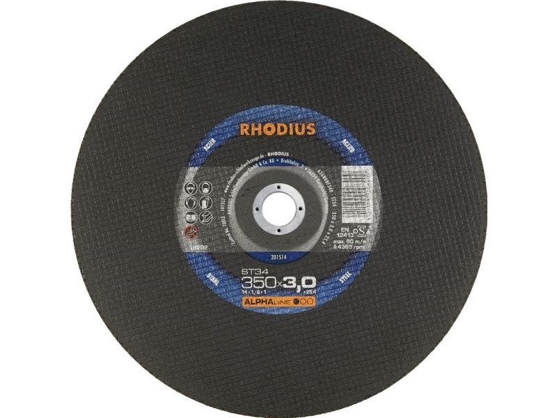 Rhodius ST34, 10 stk. stationær skæreskive 350 x 3,0 x 25,40 mm, form 41, ALPHALINE, til stål Maskinegnethed: Skæreskive ST34 er egnet til stationær anvendelse til kapsav eller bordsav. Materiale: ST34 er specielt afstemt til anvendelse i stål (sort stål også kaldet byggestål, S37, S235JR, 1.0037 eller karbonstål). Opbygning og fremstilling: Adskillelsesskæreren indeholder korund af høj kvalitet (aluminiumoxid) og 2 glasfiberstof med fuld overflade. Minimumssidebelastningen for adskillelsesskæreskiven er i henhold til en 12413 og OSA 40 N, eller fra diameter 150 mm 50 N. i boringen er sidste anvendelsesdato (tre år) præget. Gennem omfattende in-proces-kontrol i produktionen sikres der en ensartet kvalitet. For at give maksimal sikkerhed Maximum, testes hver tusindeste skive destruktivt. Der er tale om en skive i lige form (form 41). Skæreskiver med lige form muliggør en større nedsænkningsdybde og dermed også flere snit. Anvendelse: I programmet overbeviser ST34 med et aggressivt snit og et fremragende stille drift. Med denne skæreskive kan der arbejdes særligt økonomisk. Dette Rhodius-kvalitetsværktøj er særligt velegnet til skæring af byggestål, værktøjsstål og fjederstål. Mål: Den stationære skæreskive med en vinduesbredde på 2,5 mm og 3,0 mm fås i diametre fra 300 mm til 400 mm. Brancher: Det er det perfekte værktøj til de mange anvendelser og udfordringer inden for anlægskonstruktion, i containerbyggeri, i kedel- og beholderbygning, i konstruktionsstålbygning og i rørledningsbyggeri.