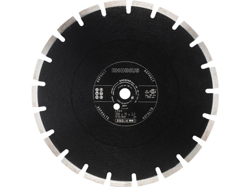 Rhodius LD60, diamantskæreskive 350 x 11,0 x 3,0 x 20,00 mm, lige, Proline, Made in Germany, til asfalt Maskinegnethed: Diamantskæreskive LD60 er egnet til brug med benzinadskiller og fugeskærer. Dens styrker kan spille fuldt ud på maskiner i alle effektklasser. Materiale: LD60 er målrettet mod bearbejdning af asfalt. Opbygning og fremstilling: LD60 har en segmenteret klinge. På den måde opnås en meget høj skærehastighed samtidig med maksimal holdbarhed. Værktøjet er testet i henhold til EN13236 og OSA og kan anvendes i vådsnit og også i tørsnit. Takket være de førsteklasses industridiamanter er LD60 særligt effektiv. Skiven er desuden lasersvejset. Mål: Denne diamantskæreskive fås i diametrene fra 300 mm til 500 mm.