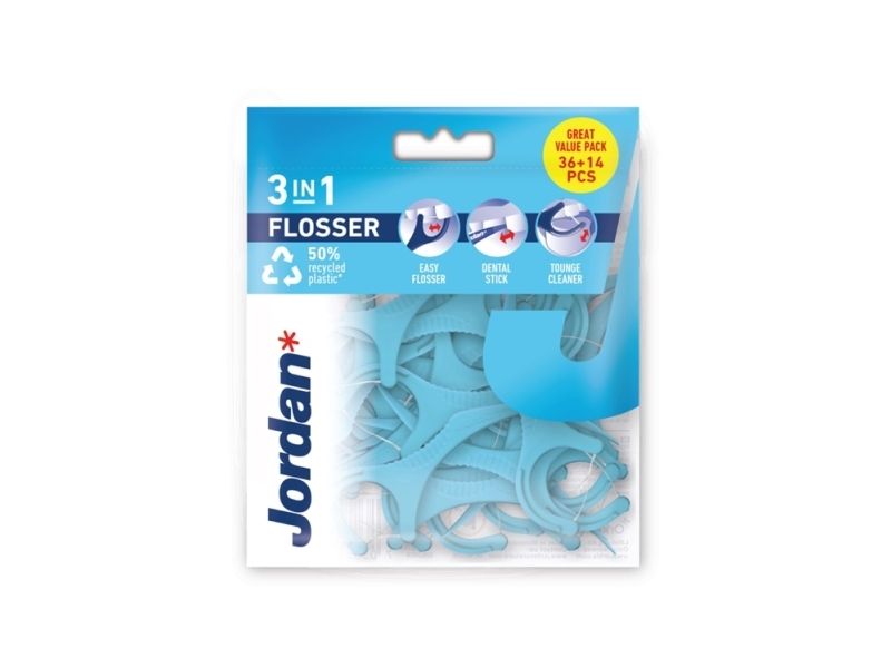 JORDAN_Flosser 3-i-1 gjengede tannpirkere 50 stk.