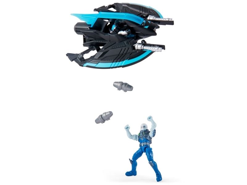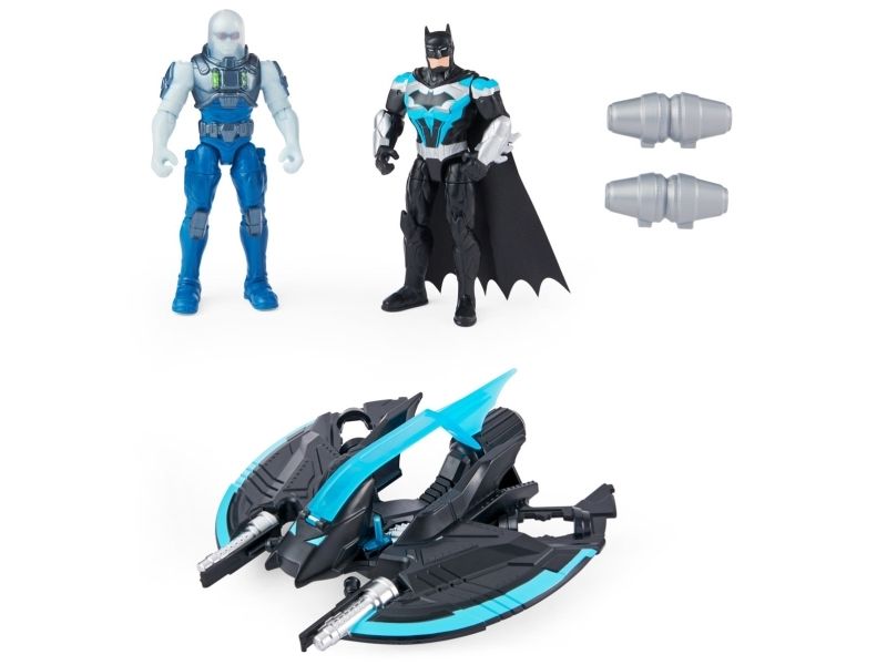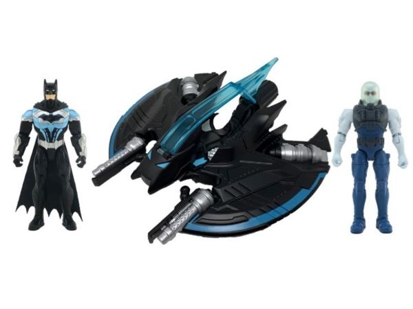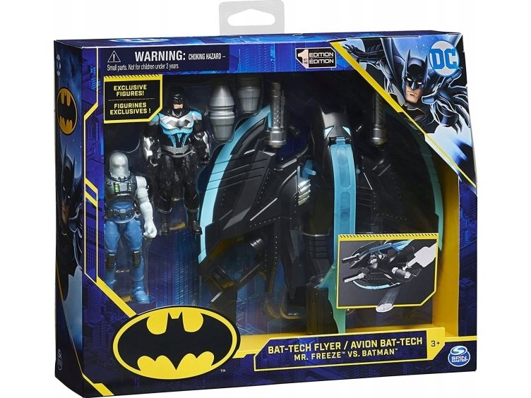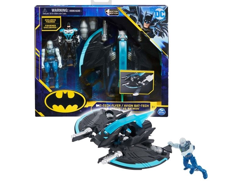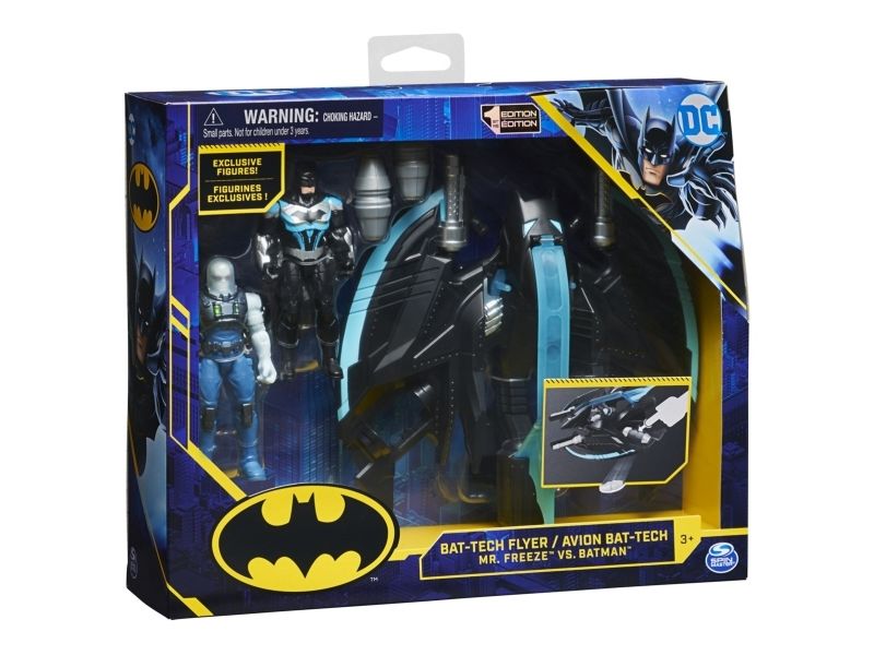 Contents/equipment: 1 Bat-Tech flyer, 1 Batman figure (10cm), 1 Mr. Freeze figure (10cm), 2 droppable grenades