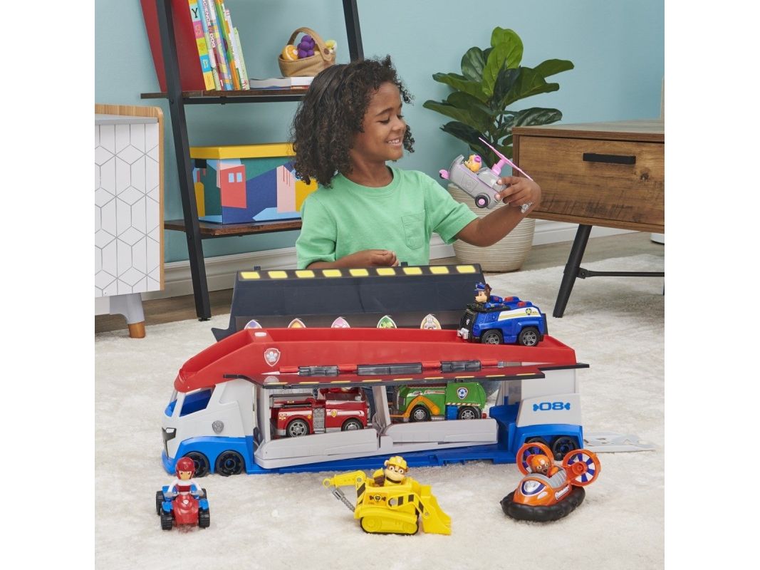 Join Ryder and the PAW Patrol on rescue adventures with the PAW Patroller! This action-packed team rescue vehicle comes with Ryder and his ATV and features transforming doors, dual vehicle launchers and realistic sounds! When trouble strikes, get ready to roll to the rescue. There’s room inside the PAW Patroller for two vehicles (not included) and room on the outside for four more PAW Patrol cars! Load Ryder and another pup up the back ramp and use your imagination to play out your rescue missions. Push the button on the side of the PAW Patroller for an epic door transformation. The vehicle’s sides flip up, revealing dual vehicle launchers! Pull the lever to position the launchers and press the launcher buttons to send your vehicles racing to the rescue! Then, press the button on top of the PAW Patroller to hear sound effects straight from the show! This PAW Patrol toy brings the excitement and adventure of the hit show to life. The PAW Patroller with Ryder and ATV toys for 3 year old boys and girls is the perfect gift for kids and PAW Patrol fans. Team up with the rest of the pups and their rescue toy vehicles (each sold separately) and help save the day. Launch to the rescue with PAW Patrol and the PAW Patroller!