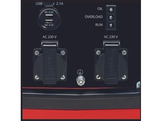 Strømmen forsynes via to 230 V-stikkontakter. Derudover har generatoren også to USB-stik. Det lukkede design sikrer en støjsvag drift. Generatoren er forsynet med en overbelastningssikring og en sikring mod for lav oliestand. Generatoren startes nemt med rekylstart, og den har bærehåndtag, så den er nem at transportere.