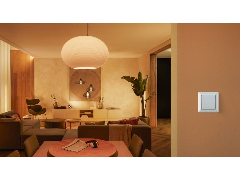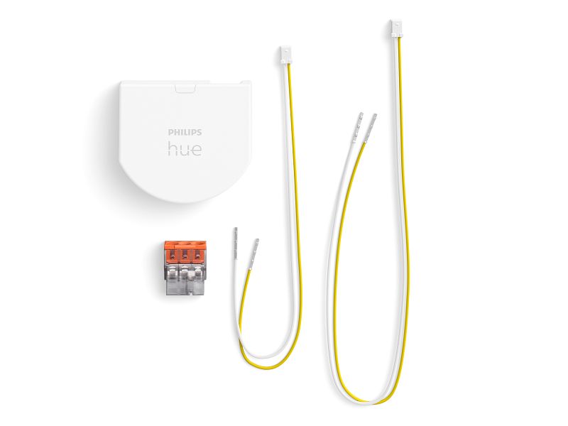 Philips Hue Wall switch sørger for at dine Hue-lamper og Hue-pærer kan være koblet til selv om hovedbryteren på veggen som er koblet til disse lysene, står i ”av”-posisjon. Dette gjør at du alltid kan nå lysene dine via telefonen eller alle Hue-tilbehør. Via Hue-appen kan du også lage en innstillingen som gjør at du kan bla gjennom lysscener i et rom ved å slå på og av veggbryteren. Philips Hue Wall Switch-modulen fungerer bare med ditt eksisterende Hue-system, og gjør ikke at du trådløst kan styre ikke-oppkoblede lamper eller oppkoblede lamper som ikke er en del av Hue-systemet.