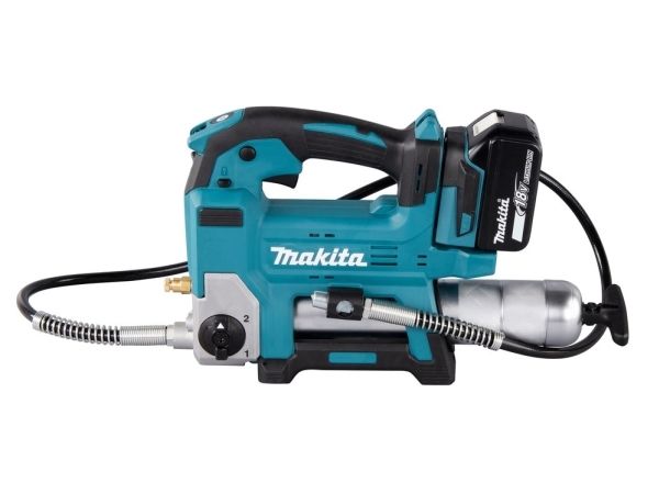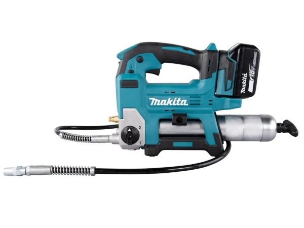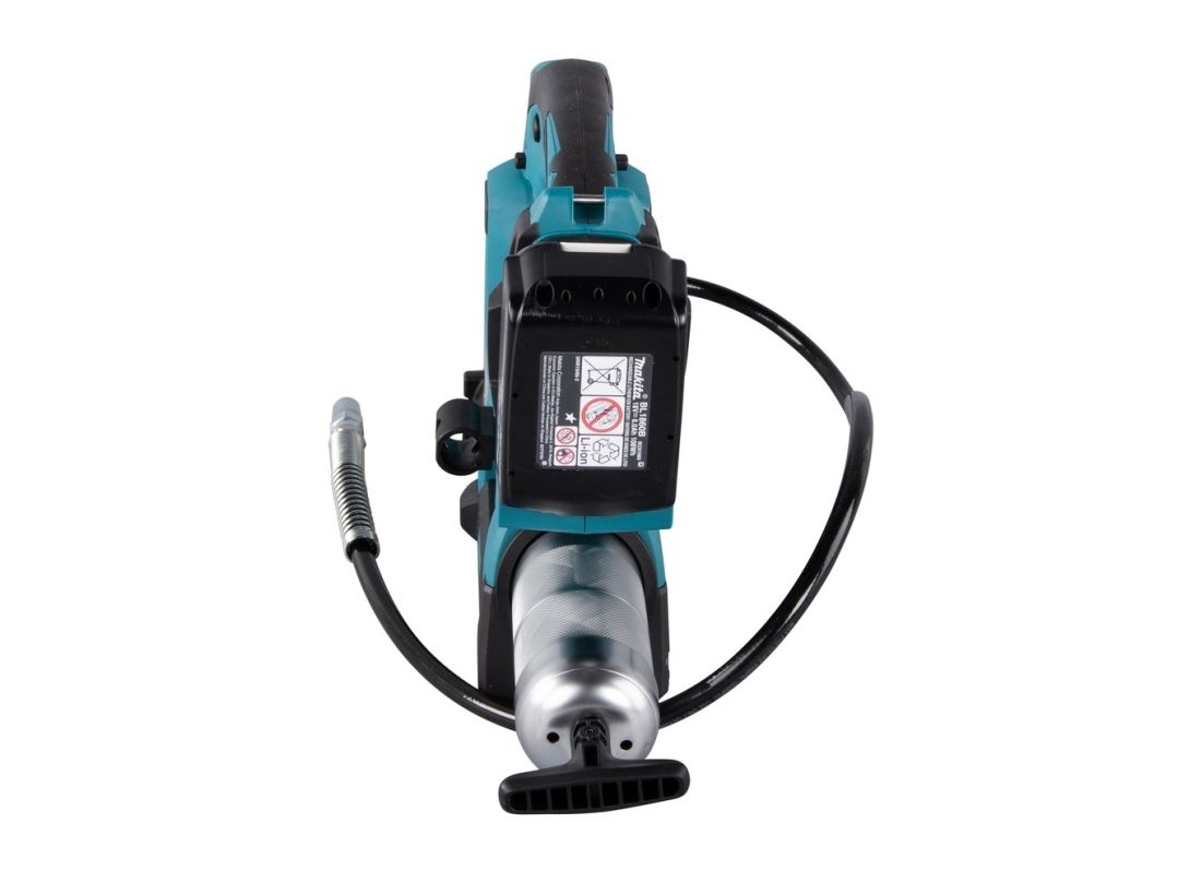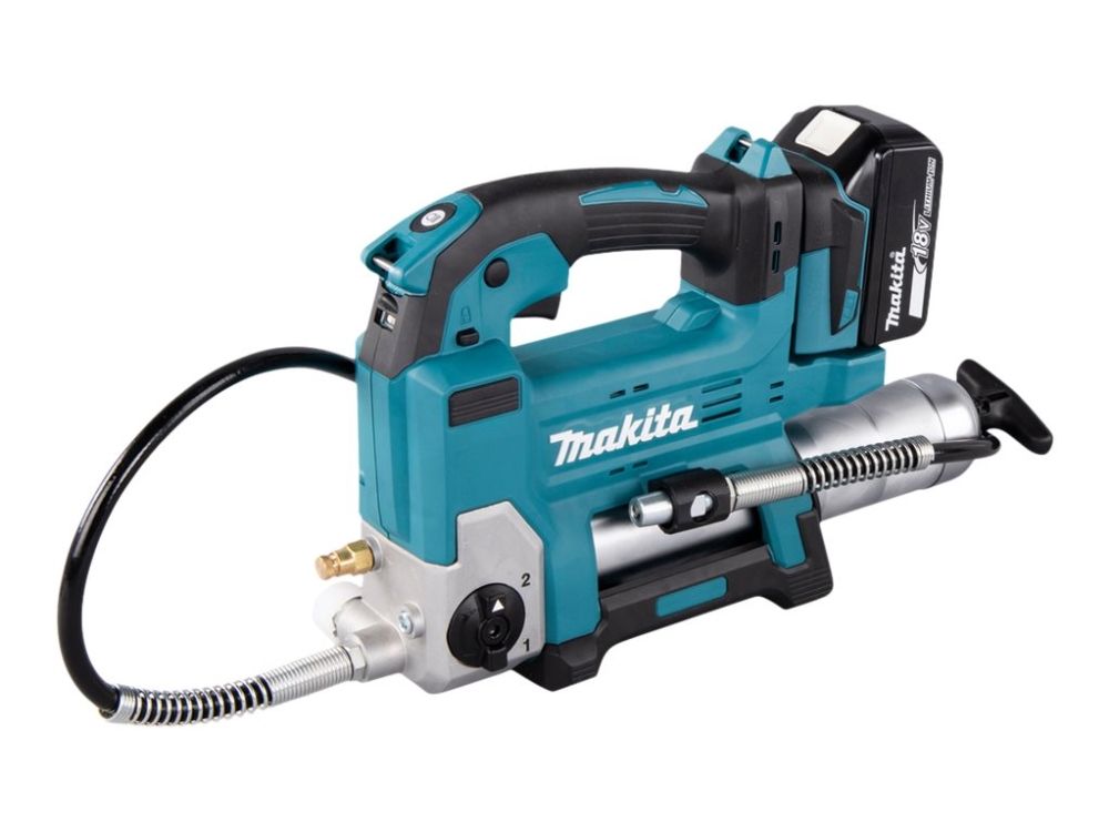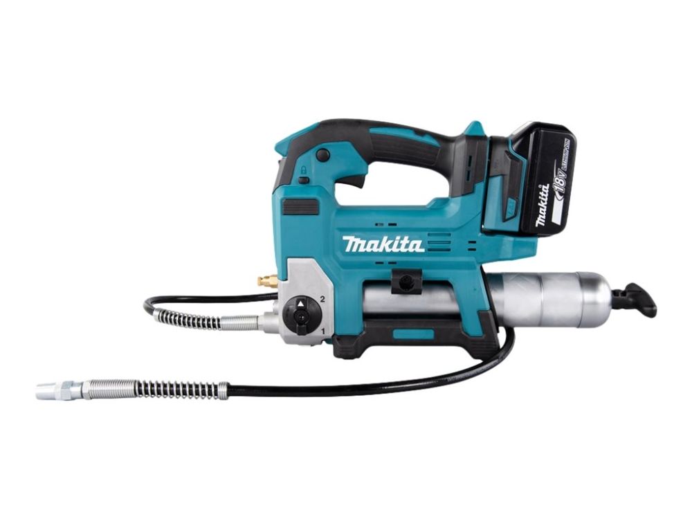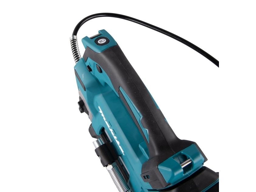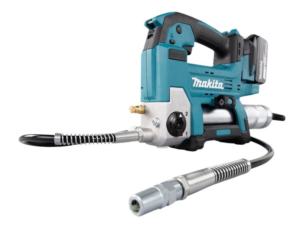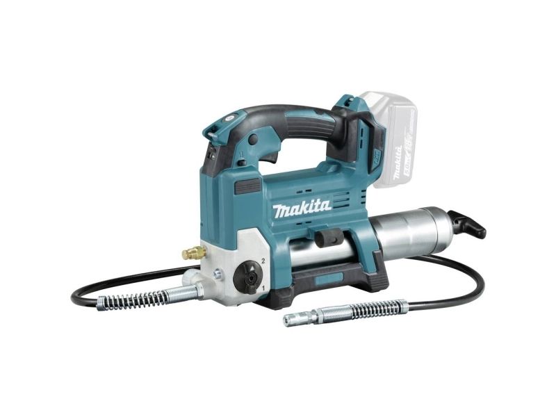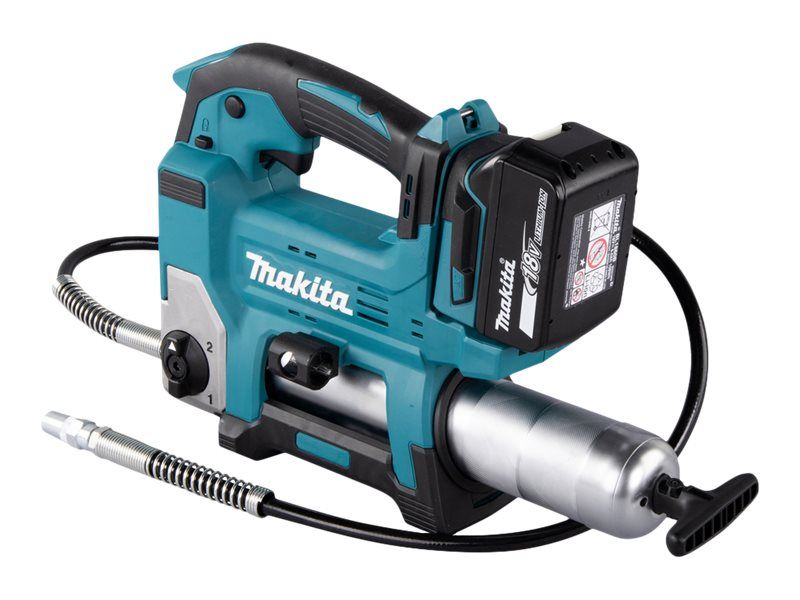 Effektiv 18V fettpresse med 1200 mm lang slange til og beholder til 400ml patroner. Brukes til påfylling av fett, typisk for anleggsmaskiner, gårdsmaskiner og liknende. Opp til 690 bar trykk. Ved hurtig påfylling justeres maskinens hastighet automatisk i forhold til motstanden. Z-modell leveres i eske uten batterier og lader.