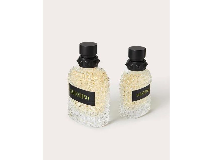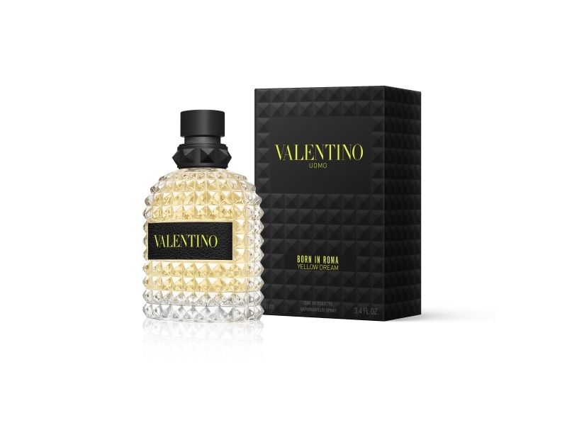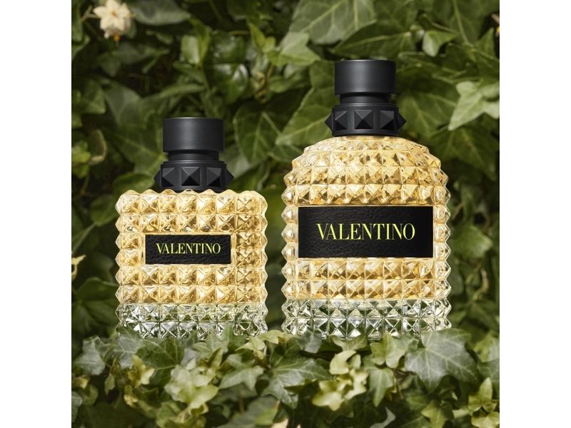 The bottle is designed with the iconic Valentino Rockstud: inspired by Roman architecture, it transforms the bottle from classic to edgy. The bottle is multifaceted and energized by a neon yellow signature.